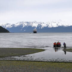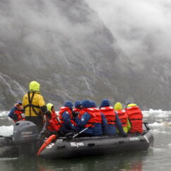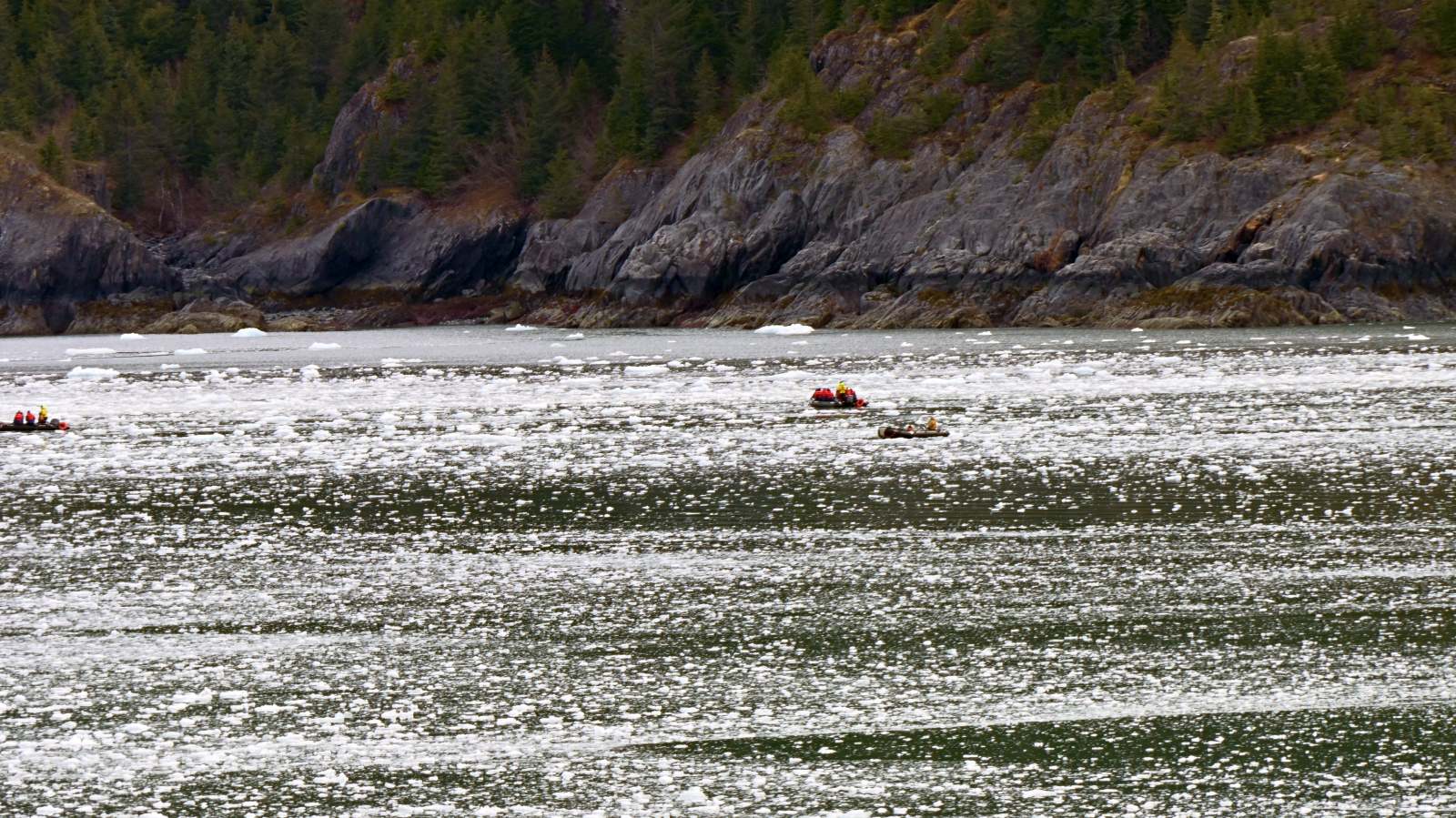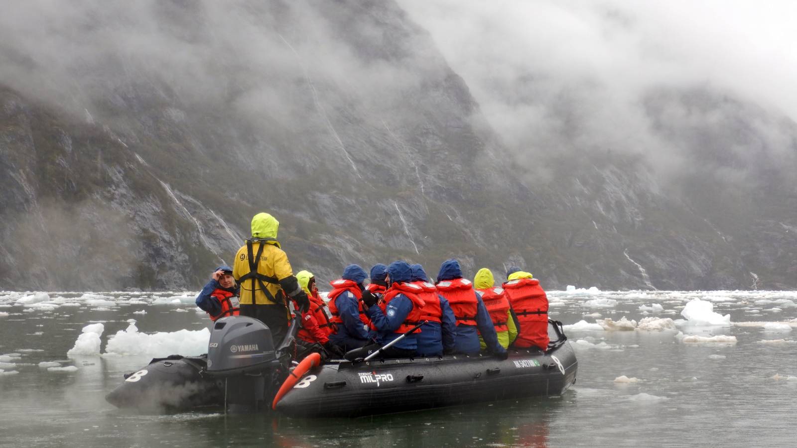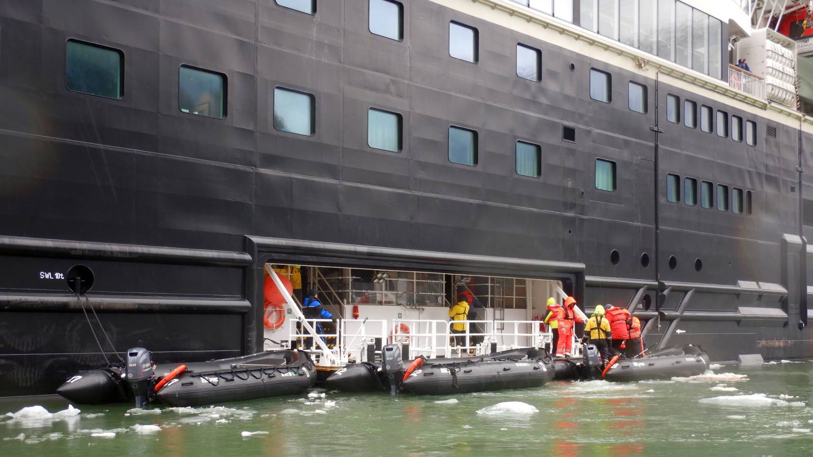 Irgendwann stoppt das Schiff und es beginnt das Ausschiffen der Zodiak-Boote und Kajaks. Heute ist ein Ausflug zum Gletscher auf dem Programm. Wir sind einer späten Gruppe zugeteilt.