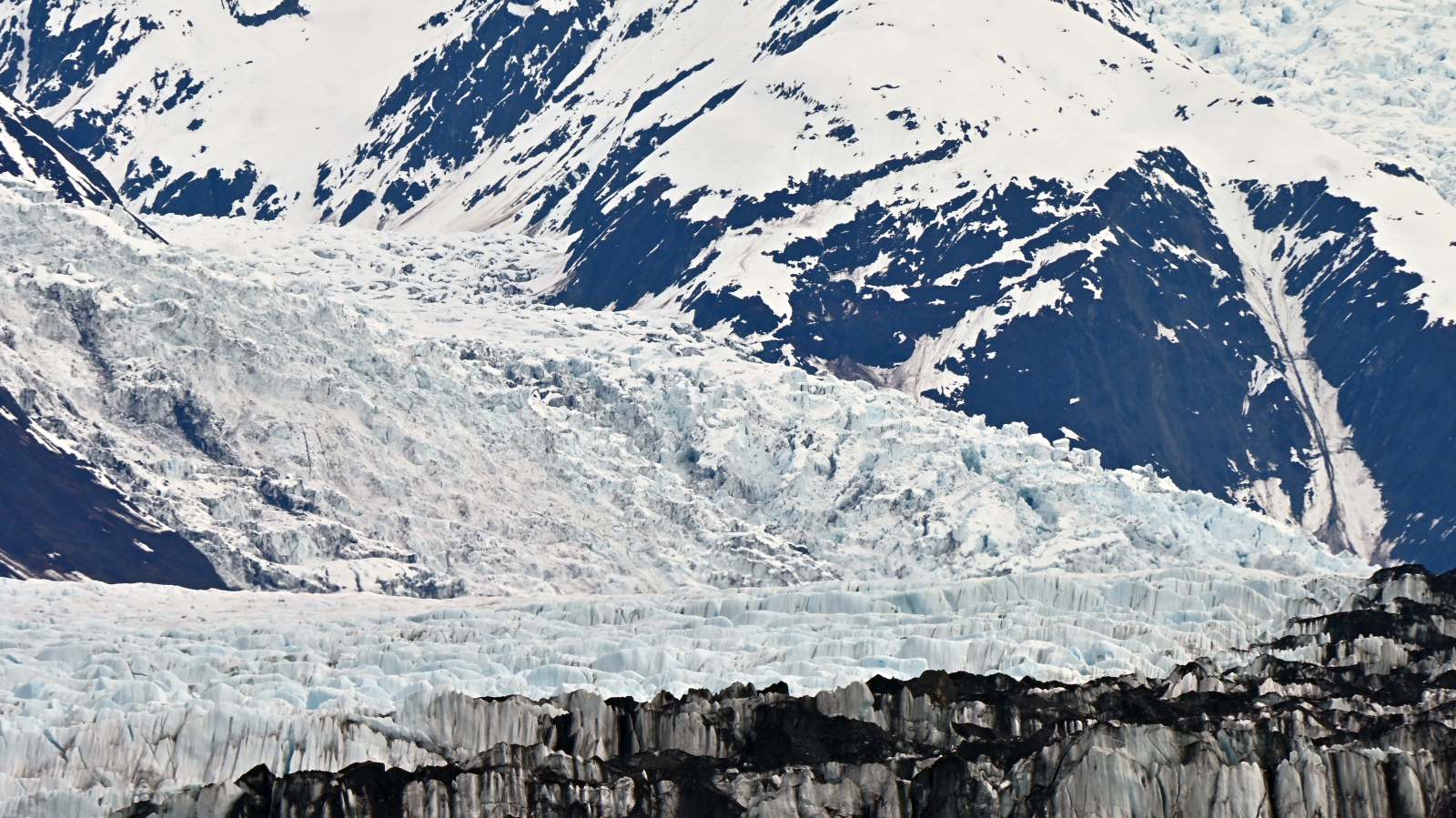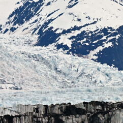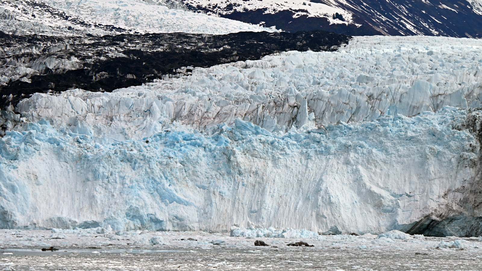 Heute wird es magisch. Wir sind im Harvard-Arm des Collegefjords und die Roald Amundsen geht vor einem riesigen Gletscher vor Anker. Manchmal grollt und knallt es laut in dem Eisfeld und gelegentlich stürzen kleinere Eismassen in die Tiefe: