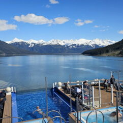 Zugleich genießen die Passagiere ein fast durchgehendes All-Included-Angebot. Im Hauptrestaurant gibt es ein Frühstücks- und Mittagsbüfett, die keine Wünsche übrig lassen. Abends ein 3-Gänge-Menü im 5-Sterne-Charakter und außerhalb der Öffnungszeiten lässt sich der Appetit im Zweitrestaurant stillen mit Kleinigkeiten wie verschiedenen Burgern, Hot-Dogs, wahlweise mit regionaler Wurst, Lamm oder Lachs und so weiter. Wein, Kaffee, Bier und Säfte sind überall selbstverständlich. In der Explorer Lounge auf Deck 10 kann man sich in bequeme Sessel lümmeln und hinter den Panoramafenstern die Landschaft an sich vorüberziehen lassen. Gern mit einem der zehn angebotenen Cocktails, Wein oder Bier. Und das zu jeder Tageszeit.
