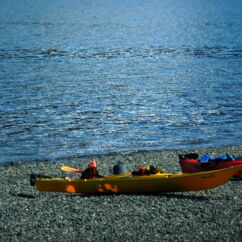 Vor der Rücktour wird an einem Strand nach 1,5 Stunden gepicknickt und wir klettern eine zeitlang am Ufer herum. Das Wetter ist traumhaft und das Gebirgspanorama mit den schneebedeckten Gipfeln atemberaubend.