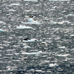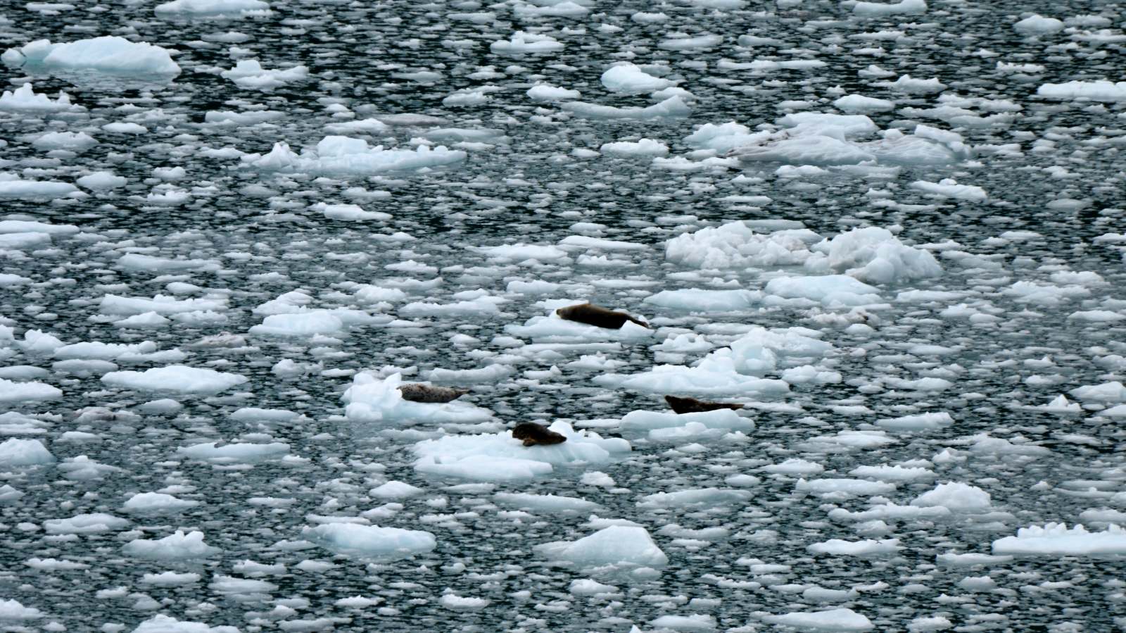 Abermals kurven die Zodiaks zwischen den Eisschollen herum, es tauchen ein paar neugierige Robben auf und dann geht es wieder aufs Schiff. Von der angekündigten großen Vielfalt der Tierwelt ist wieder nichts in Sicht.