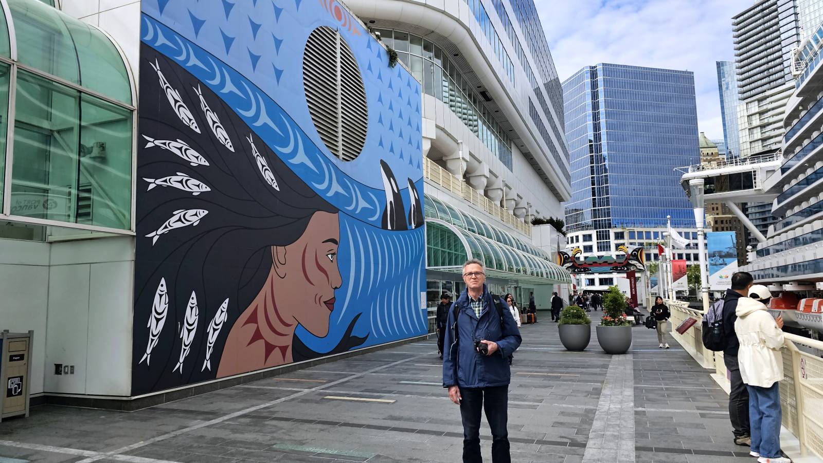 Fast zehn Stunden dauerte der Flug von Frankfurt nach Vancouver. Während Fritz und ich zwei Spielfilme schauten und uns unterhalten konnten, hatte es unsere nette indische Sitznachbarin nicht so leicht. Sie sprach und las ausschließlich Panjabi Gurmuhki. Fritz schaffte es noch kurz vor dem Start, diese Sprache bei Google Translator herunterzuladen, allerdings waren nur wir in der Lage, etwas zu tippen. Unsere Tastatur stellte natürlich keine Panjabi-Schriftzeichen zur Verfügung.