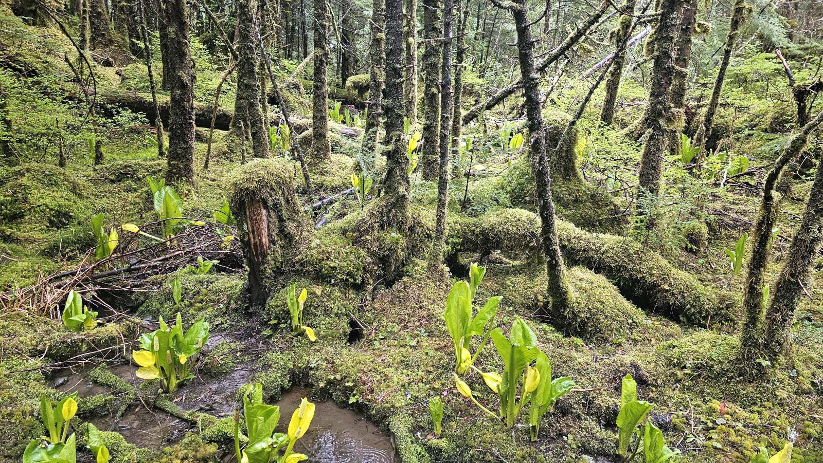 Gelbe Farbtupfer bringen die Blüten des Amerikanischen Stinktierkohls in das vorherrschende Grün. Sie gehören zu den Lieblingsspeisen von Bären, doch wenn sie erst einmal angeknabbert sind, machen sie ihrem Namen alle Ehre.