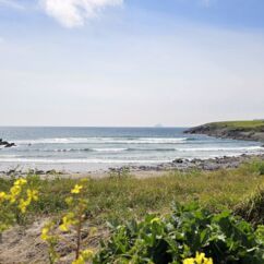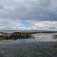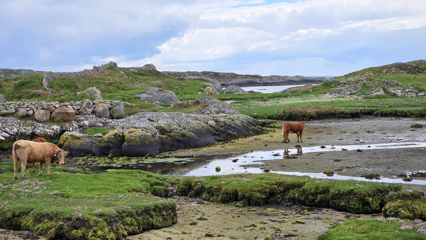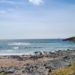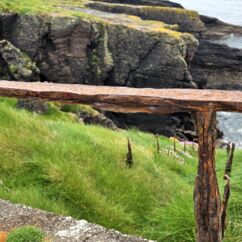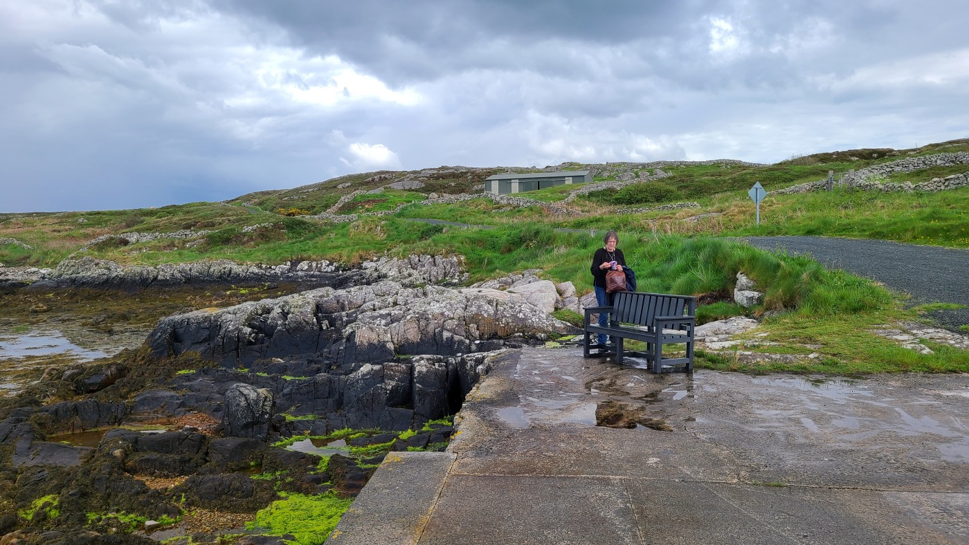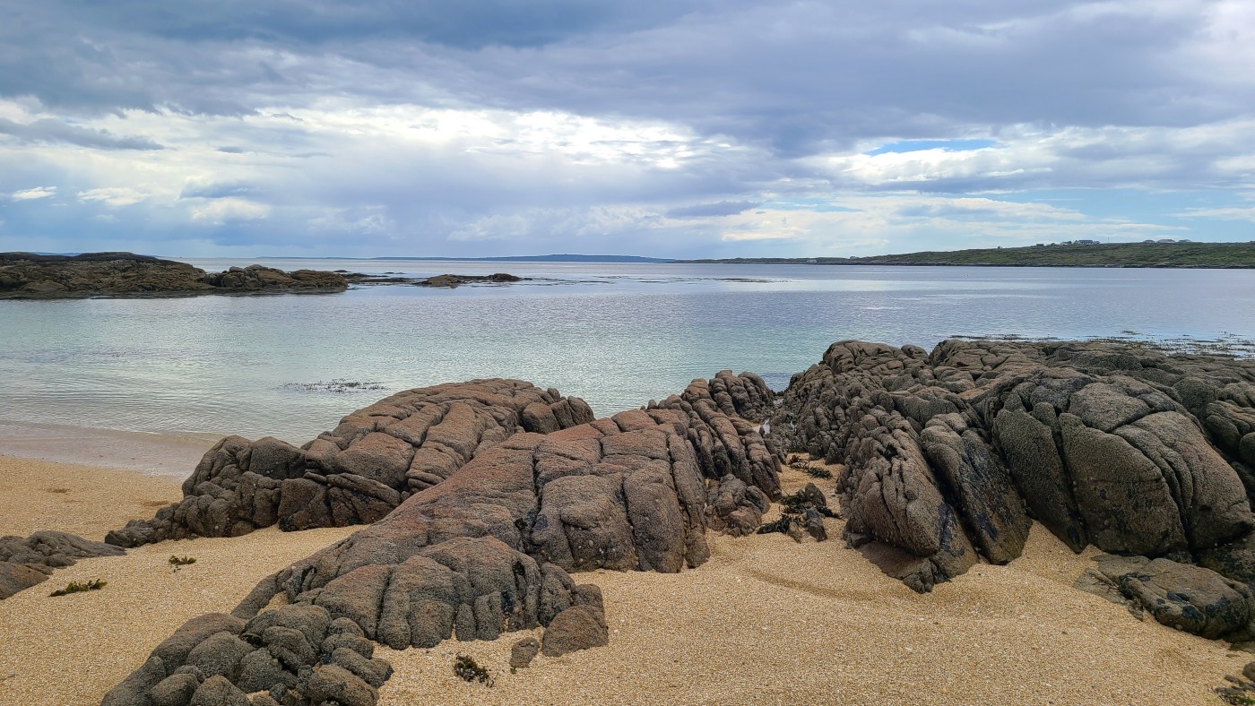 Gestern nahmen wir den Küstenweg bis zur Ortschaft An Cheathtrú Rua und drehten eine große Runde durch Dünen- und Felsenlandschaft. Hier sind alle Namen nicht mehr aussprechbar für uns, die Beschilderungen sind ausschließlich in irischer Sprache.