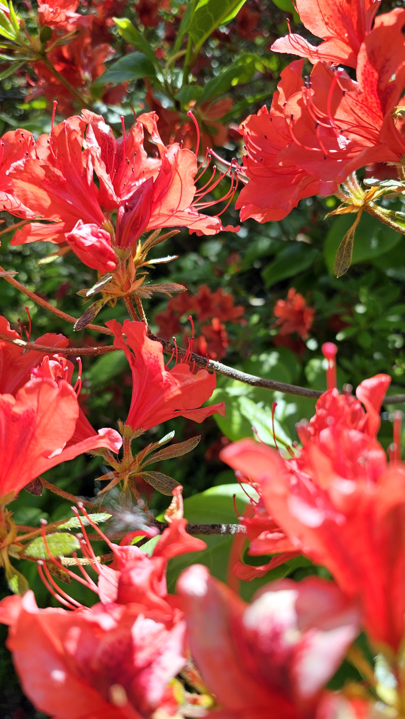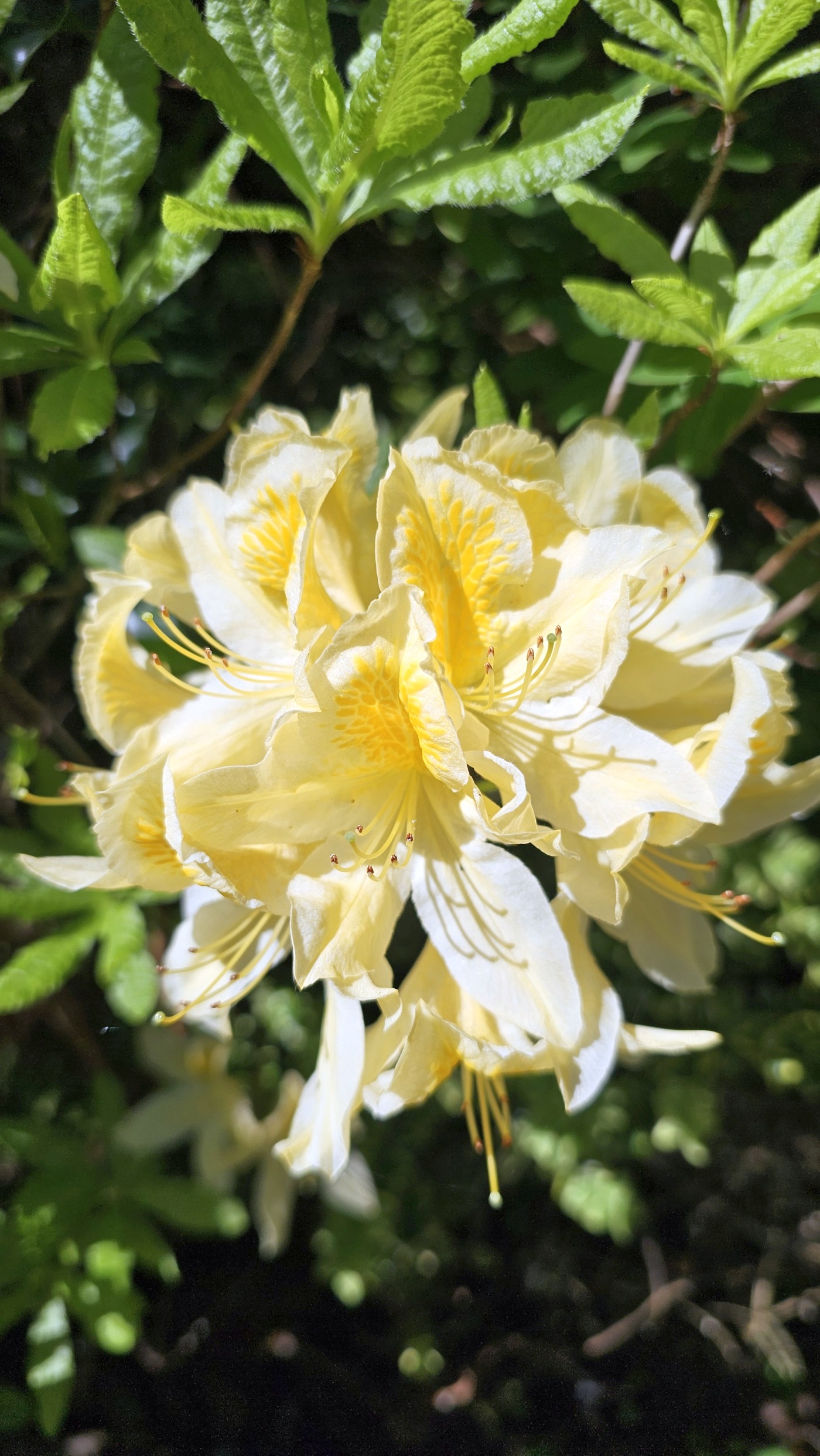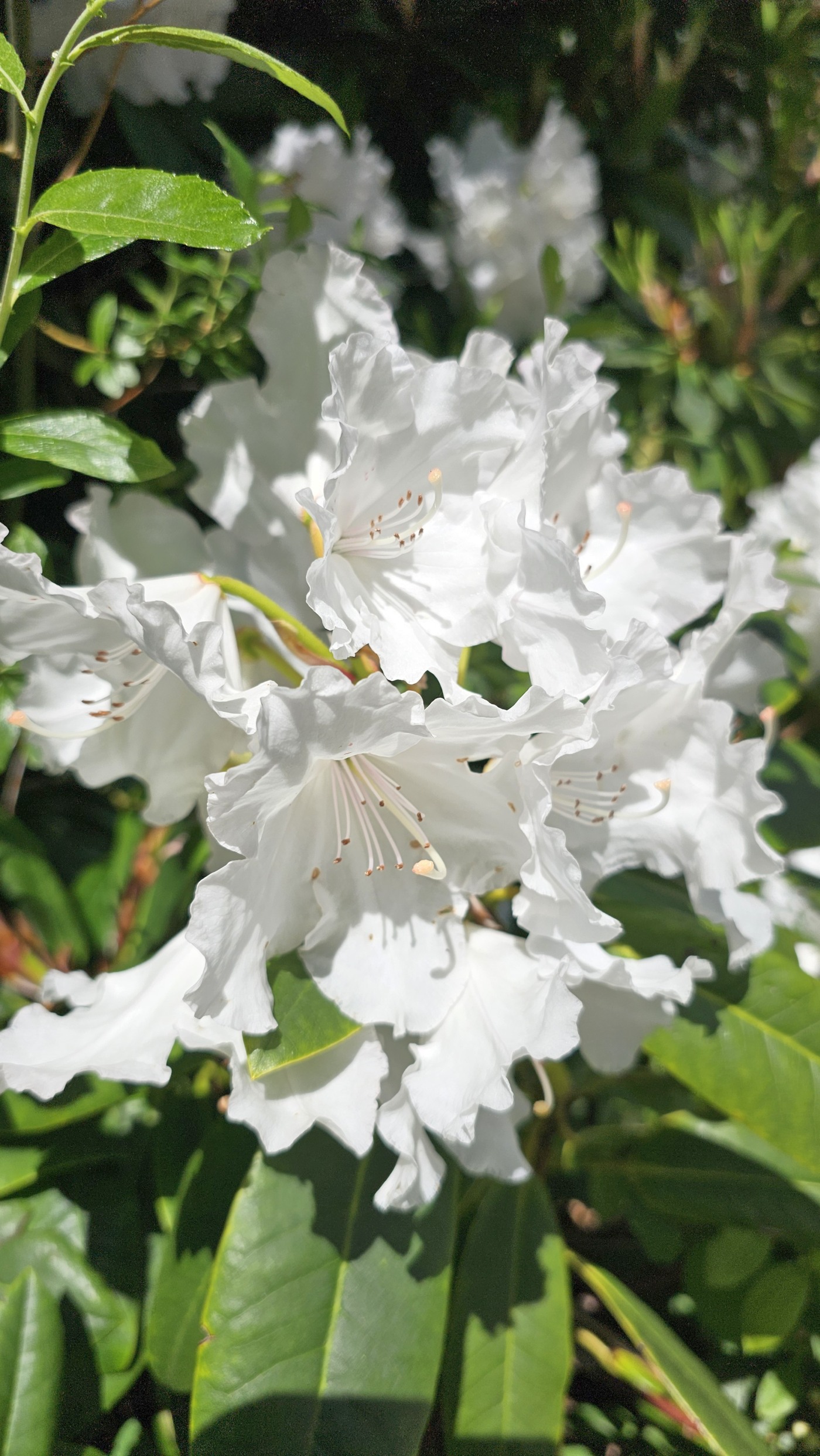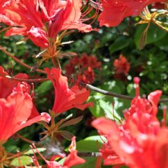 Heute starten wir beim Muckross House im Killarney National Park und wandern zehn Kilometer um den See herum. Ein Großteil des Weges führt durch den Wald mit Baumriesen von Kiefern, Eichen, Ilex, Lebensbäumen und Eiben, dazwischen wild wachsenden lila Rhododendren. Nach der Hälfte des Weges kommen wir an einem Cottage vorbei mit einem großen Kamelienbaum und Rhodendren in vielen verschiedenen Farben.