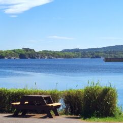 An einem Wasserlauf führt der Weg steil über viele Stufen zum Ufer des Sees herunter und wir können vom Ufer in der Ferne das Muckross House sehen, bei dem wir auf der Ring of Kerry-Tour angehalten hatten. Tja- und anschließend fällt mir nach einigen hundert Metern und etlichen Höhenmetern auf, dass ich mein Handy wohl am Ufer habe liegen lassen. Wir drehen sofort wieder um, Fritz telefoniert mit dem Finder, spurtet zurück und bald habe ich das Teil wieder in den Händen. Ähnliches war mir brreits beim Start in den Urlaub passiert. Wir standen in Berlin Kaulsdorf bereits an der Unterführung zur S-Bahn, als Sebastian mit dem Fahrrad abrupt neben uns bremste. Ich hatte es bereits dort schon das erste Mal bei Sebastian und Michéle vergessen.