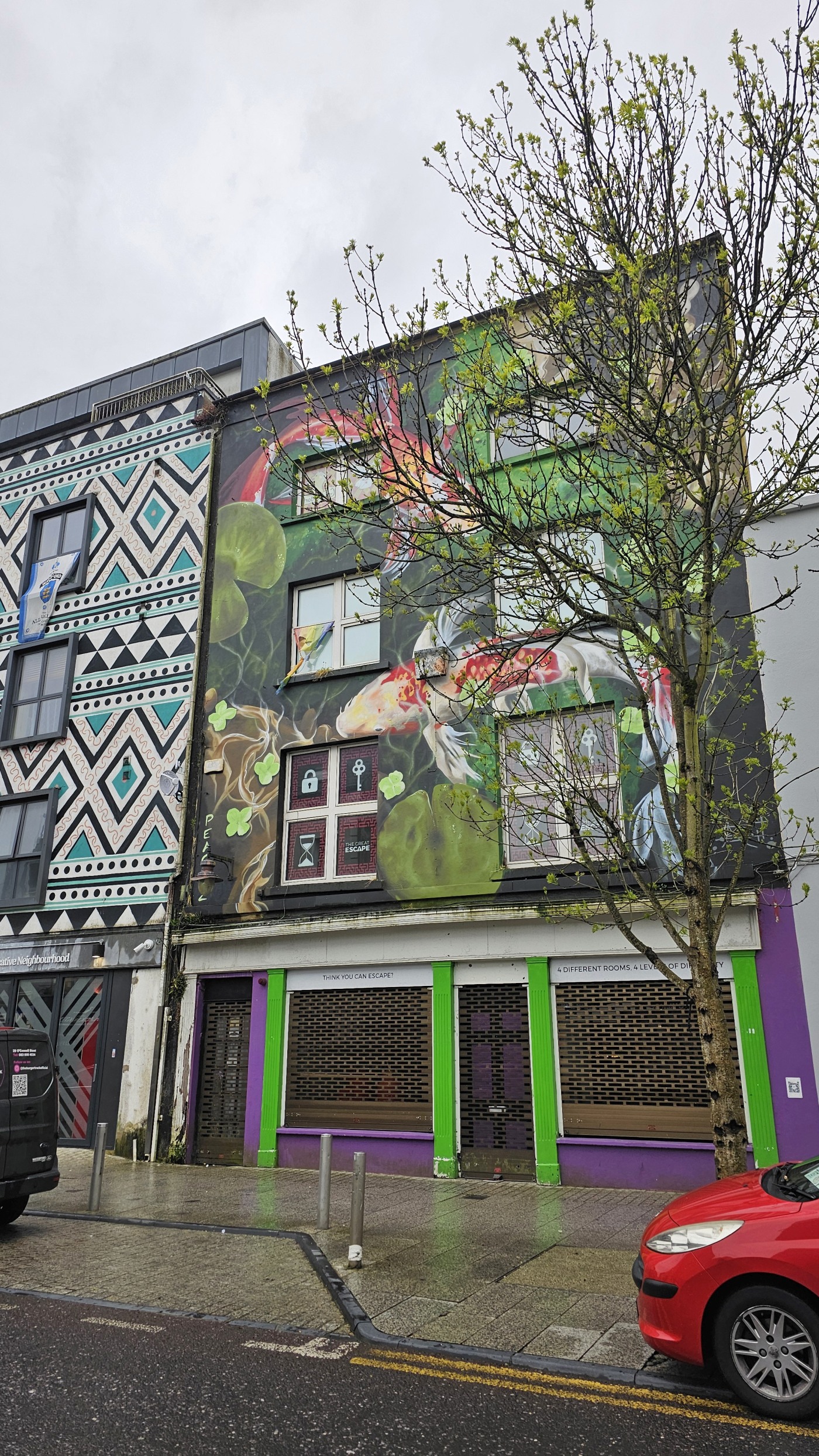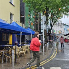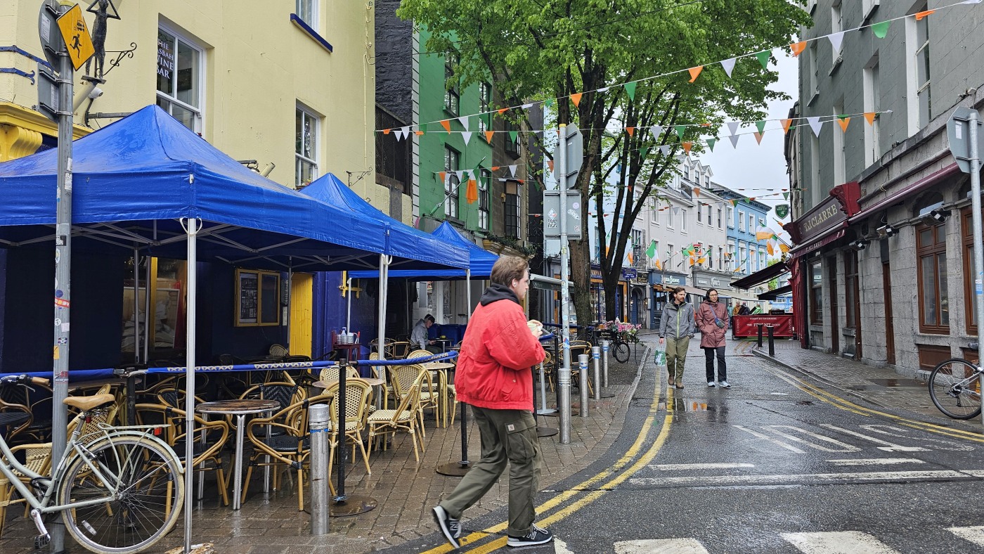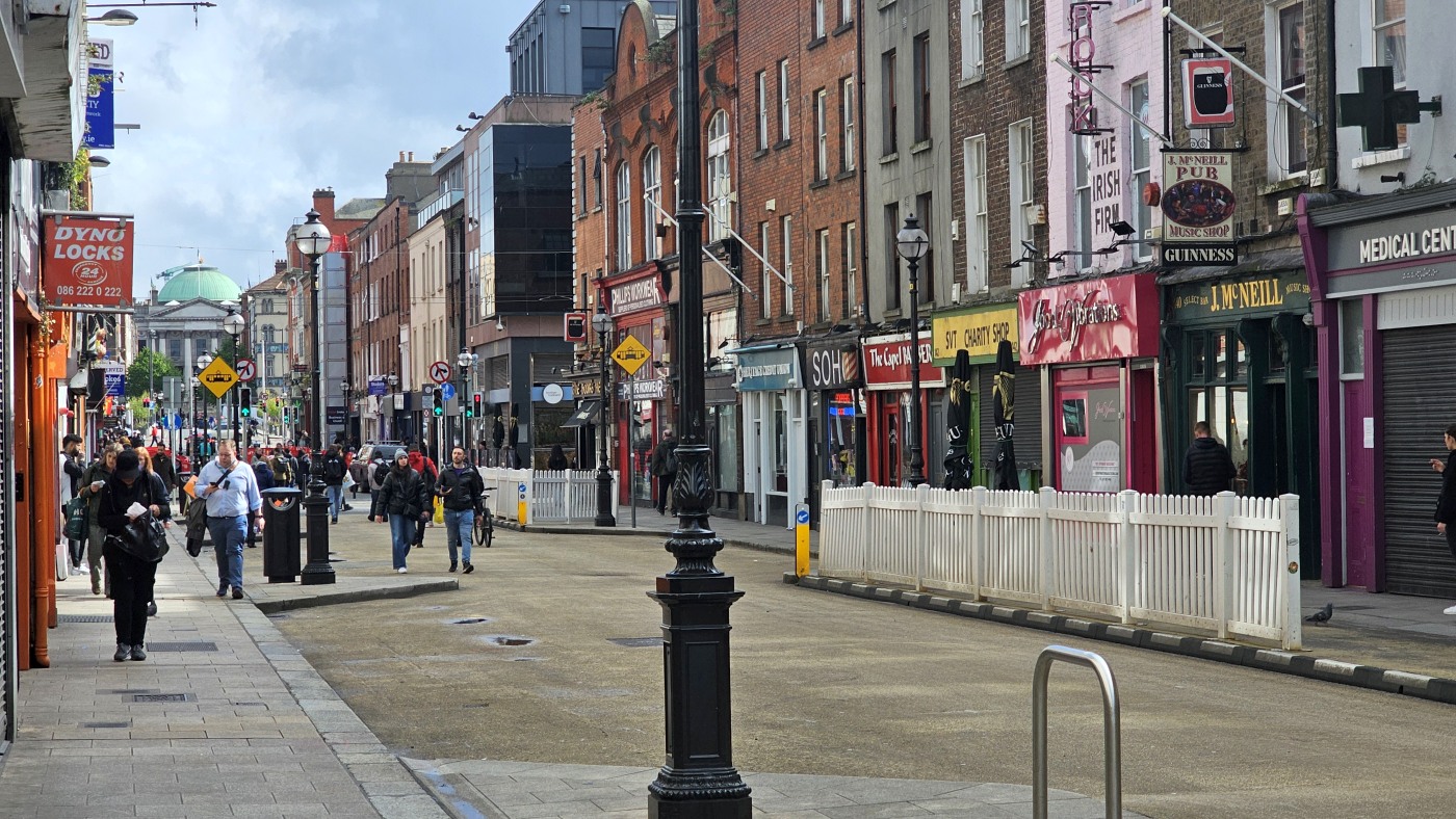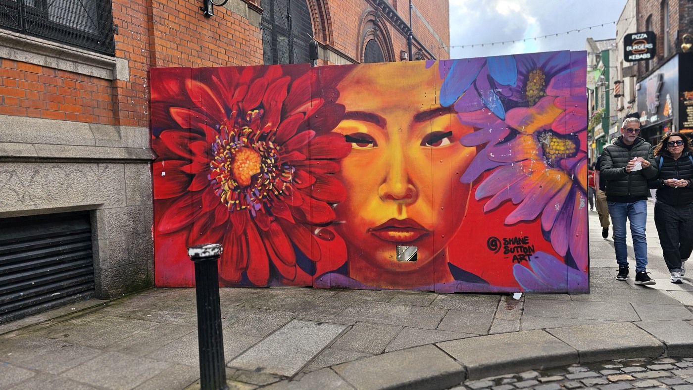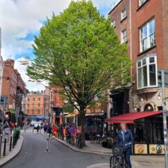 Auf dem Weg zum Moore Lane Market laufen wir über das Gelände des Trinity College. Gern hätten wir uns das angeblich schönste Buch der Welt angesehen, doch der Bereich ist derzeit gesperrt. Ebenso scheitert der Besuch der Markthalle. Ein Schild am Eingang verkündet, dass sie seit 2019 geschlossen ist.