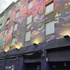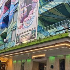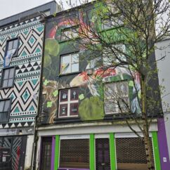 Mit einem Express-Shuttlebus erreichten wir Blooms Hotel im Bezirk Tempel Bar. Es ist wohl das bunteste Hotel weit und breit. Graffiti als Schmiererei finden wir gruselig, doch so kunstvoll gefällt es uns sehr.
