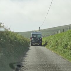 Im Reiseführer ist zu lesen, dass die Tour von den meisten gegen den Uhrzeigerzeit gefahren wird. Warum das so ist, verstehen wir erst unterwegs. Die Straßen sind nämlich oft so eng, dass sie nur noch einspurig befahrbar sind. Würden hier zwei Busse aufeinander zufahren, gäbe es kaum ein Vor oder Zurück mehr.