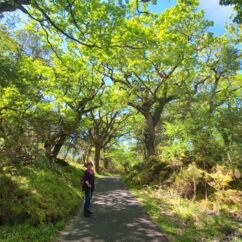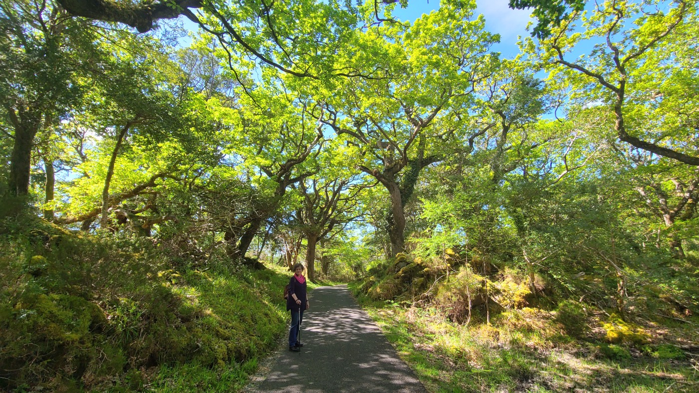 Der Killarney National Park hatte uns bei der Panoramatour Ring of Kerry und dem Gap of Dunloe sehr gut gefallen und so werden wir die nächsten Tage dort wandern. Heute starten wir im äußersten Westen des Nationalparks zu einer 7-Kilometer-Wanderung mit 190 Höhenmetern durch einen sehr alten Eichenwald.