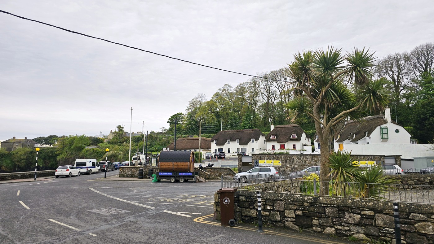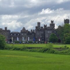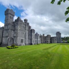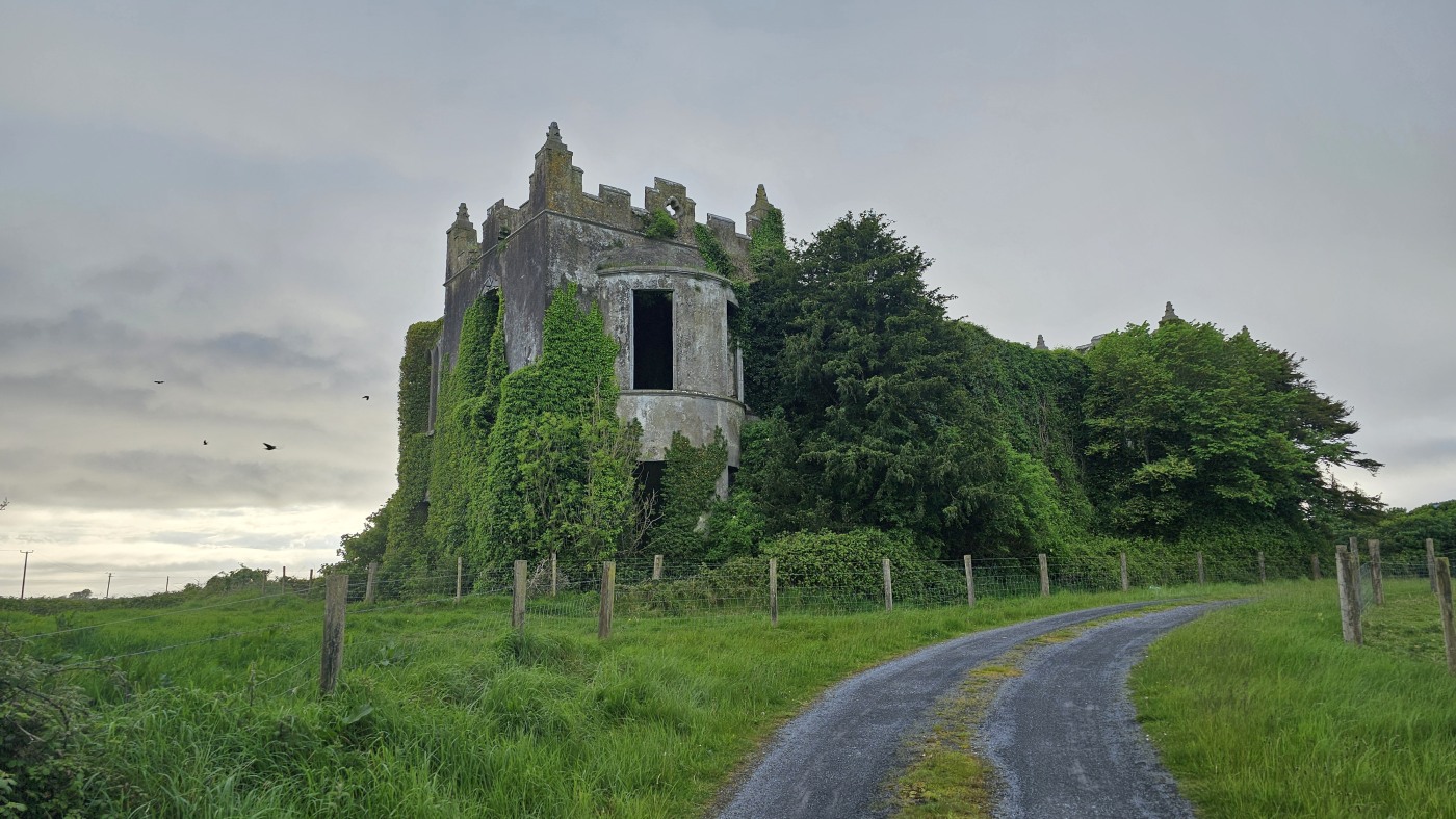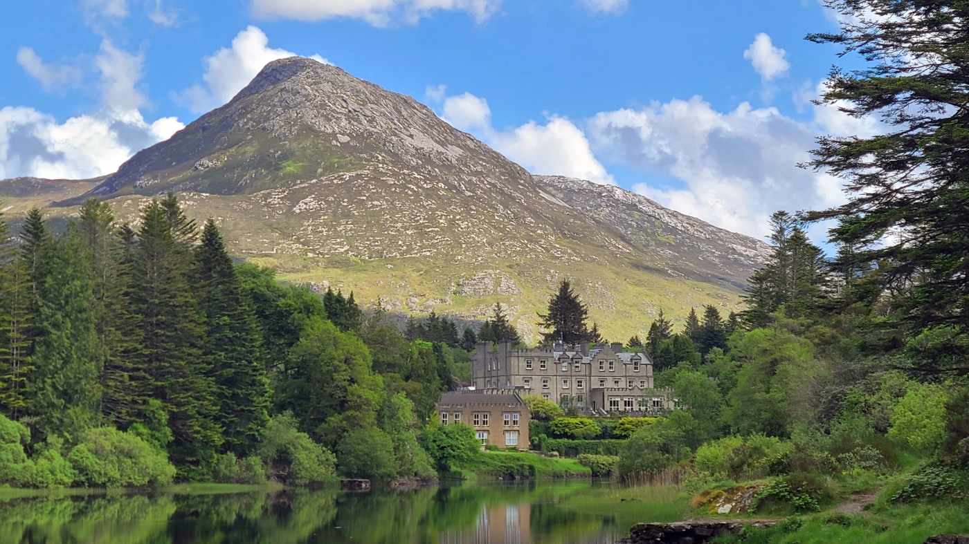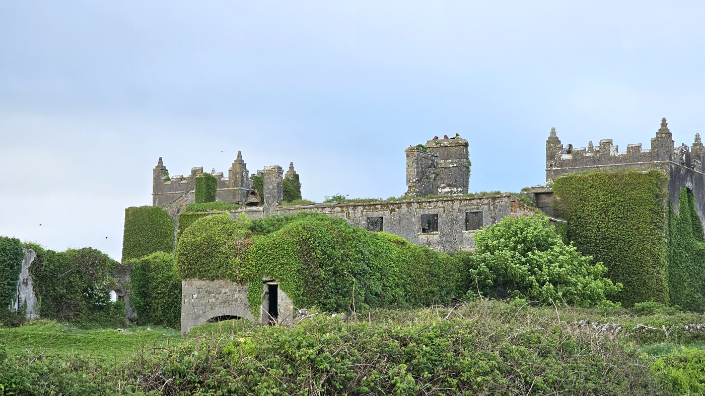 Die Ortschaft Cong liegt an einem See inmitten eines großen Waldgebietes und wir hatten uns vorgestern über Komoot eine neun Kilometer lange Runde ausgesucht. Eine Überraschung gab´s am Ende. Ein elegantes Schild mit Wappen wies darauf hin, dass man nun Privatbesitz betreten würde. Hunde müssten an die Leine, Hinterlassenschaften mitgenommen werden, Wild dürfe nicht gefüttert werden, Müll nicht liegenlassen, usw. Die Liste war lang und enthielt sogar die Aufforderung, angemessene Kleidung zu tragen. Der Weg führte uns uns dann irgendwann aus dem Wald heraus, kamen an zwei Tennisplätzen vorbei und wir landeten im unfassbar großen Schlossparkgelände des Hotels Ashford Castle. Vor dem Eingang Diener in Livree, vor dem Schlossgraben und den zwei Eingangsrundbögen an den Enden der Brücke Bedienstete, ein Hubschrauberlandeplatz und eine gepflegte Rasen- und Gartenanlage, die sicherlich ein Heer von Gärtnern benötigt. Eine Übernachtung mit Frühstück inkl. vorgewärmten Handtüchern, Bettwäsche aus ägyptischer Baumwolle mit Schlosswappen, Obstkorb, Rundumservice und was man sonst so im Leben braucht, kostet hier nur 985 €. Bei dem Ambiente sicherlich ein Schnäppchenpreis ;)
