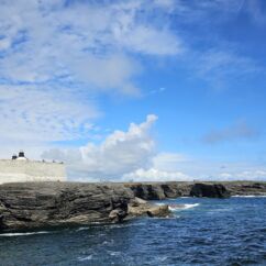 Baltimore ist die südlichste Stadt Irlands und war gestern unser Ziel. Wir haben uns den schönen Küstenweg gegönnt, sind mehrfach angehalten, um etwas zu laufen und den Blick auf Felsen und Meer zu genießen. Erst nachmittags erreichten wir unsere B&B-Unterkunft mit schönem Blick auf das Wasser. Zu Fuß machten wir uns auf den Weg in den netten Ort und steuerten nach einem kleinen Rundgang Rolfs Restaurant an, das wir im Netz entdeckt hatten. Hier sollte es richtig gutes Essen geben. Gab´s auch. Mit drei Sternen und dem entsprechenden Preis. Wir kehrten trotzdem nicht um, sondern genossen die erste schöne Mahlzeit nach einer Woche Irland.