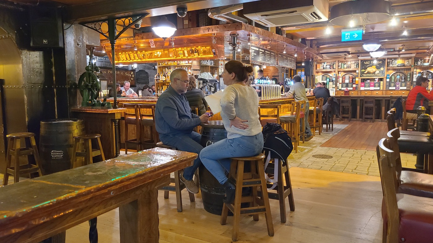 Für ein sehr spätes Mittagessen enterten wir unseren ersten irischen Pub, aßen bei Gitarrenklängen und knorrigem Gesang Pie, Muscheln und ich trank das erste Guinness meines Lebens.