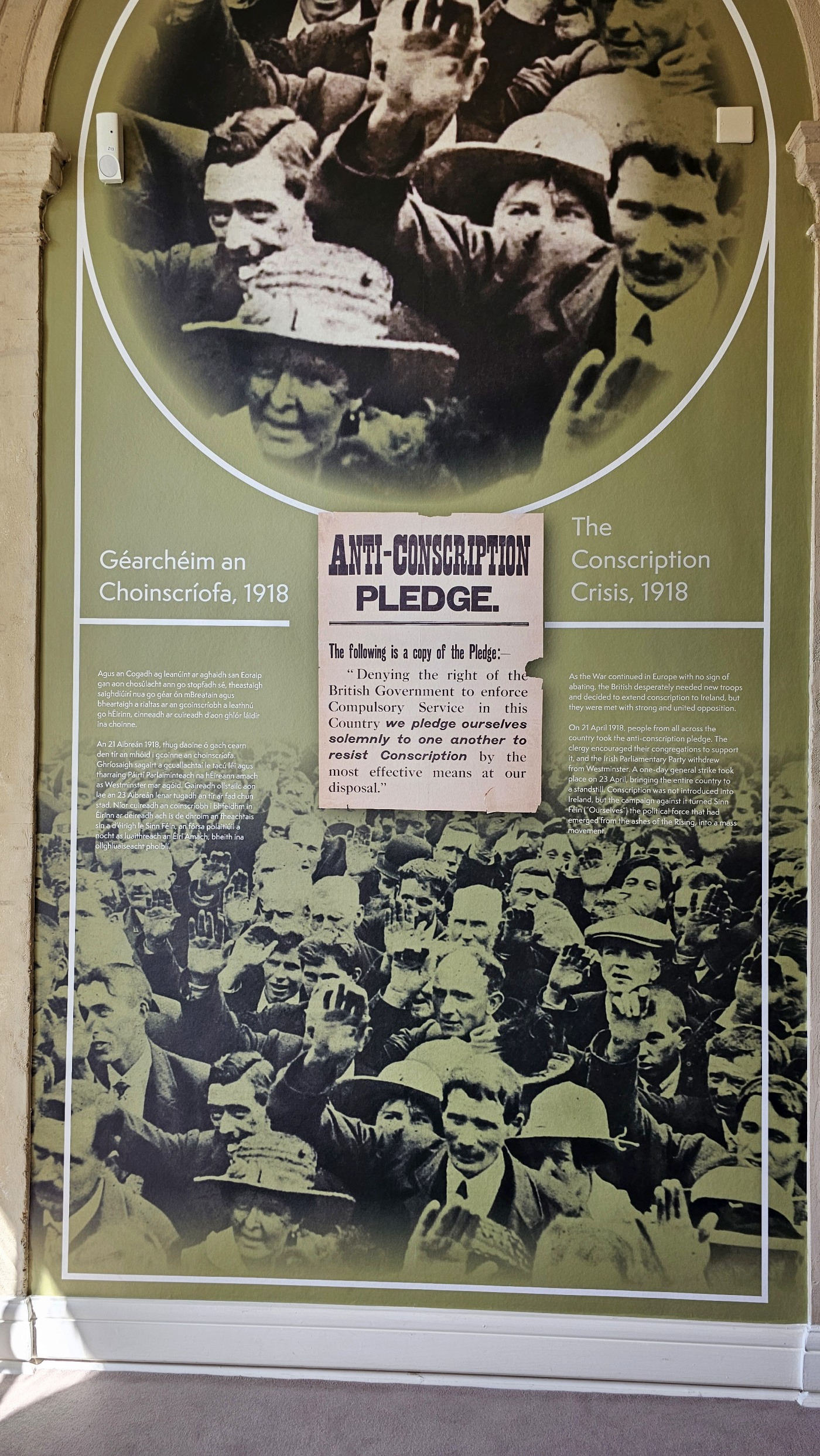 Zum Gedenken an die irischen Gefallenen aller Kriege begegnet man im Mittelschiff vielen Details. Die symbolträchtige Gestaltung hinterlässt ein Gefühl der Bedrückung. Beispielsweise sind über den Gedenktafeln zu den Gefallenen die Originalfahnen angebracht, mit denen in die Schlacht gezogen wurde. An ihnen darf unberührt der Zahn der Zeit nagen und so sind manchmal nur noch einzelne Fäden des Gewebes zu sehen.