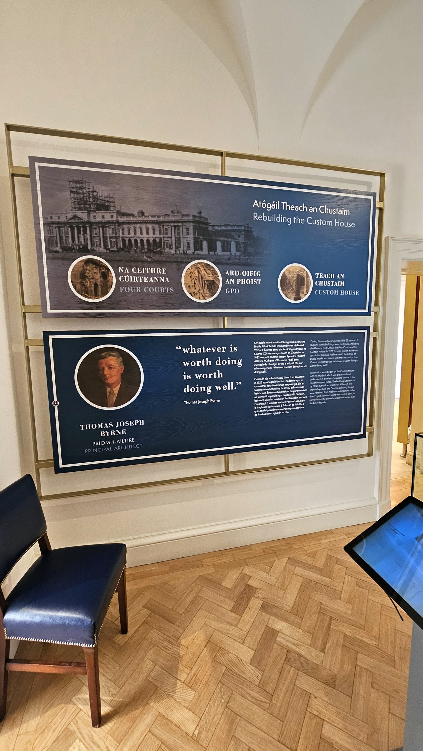 Heute ist unser letzter Tag in Dublin, wir wollen ins Auswanderermuseum EPIC. Der Weg verläuft am Liffey River entlang. Nur wenige hundert Meter davor gehen wir an einem monumentalen Gebäude vorbei. Das ist in Dublin nicht ungewöhnlich, denn an gefühlt jeder dritten Ecke ragt die Geschichte Irlands in den Himmel oder die Breite. Ungewöhnlich ist hier der Aufsteller mit der Aufschrift: Heute kostenfreier Eintritt, denn die Eintrittspreise für Museen liegen vielfach zwischen 15-20 Euro pro Person - und machen sich schnell in der Reisekasse bemerkbar.