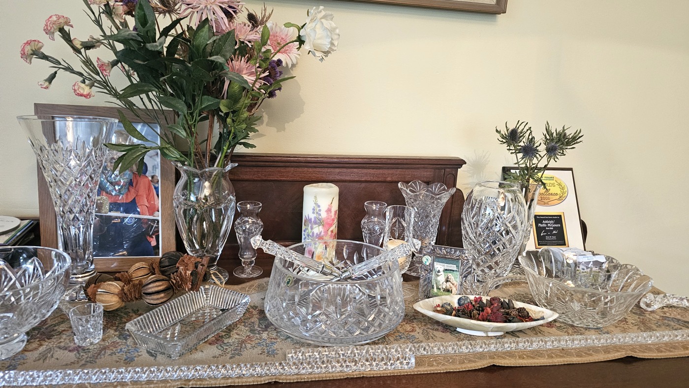 Im südlichen Waterford haben wir uns für drei Nächte im B&B Ashley House eingemietet. Nach zweieinhalb Stunden Fahrt durch kaltes Nieselwetter werden wir herzlich von Phyllis begrüßt. Zimmer und Bad sind groß, das Haus ist sehr traditionell, plüschig und mit Liebe zum Detail eingerichtet.