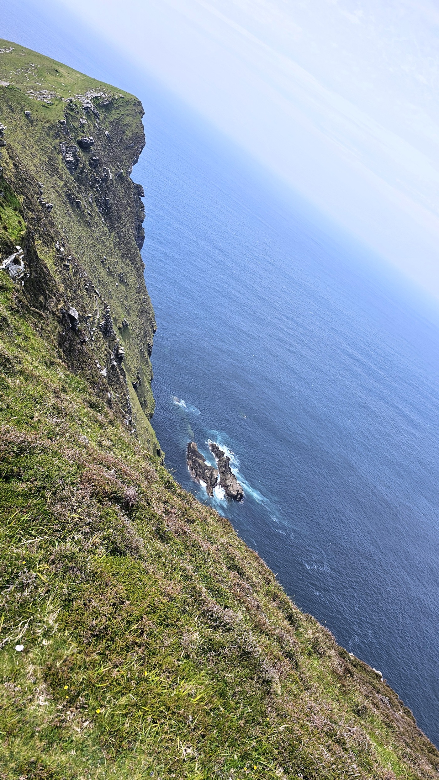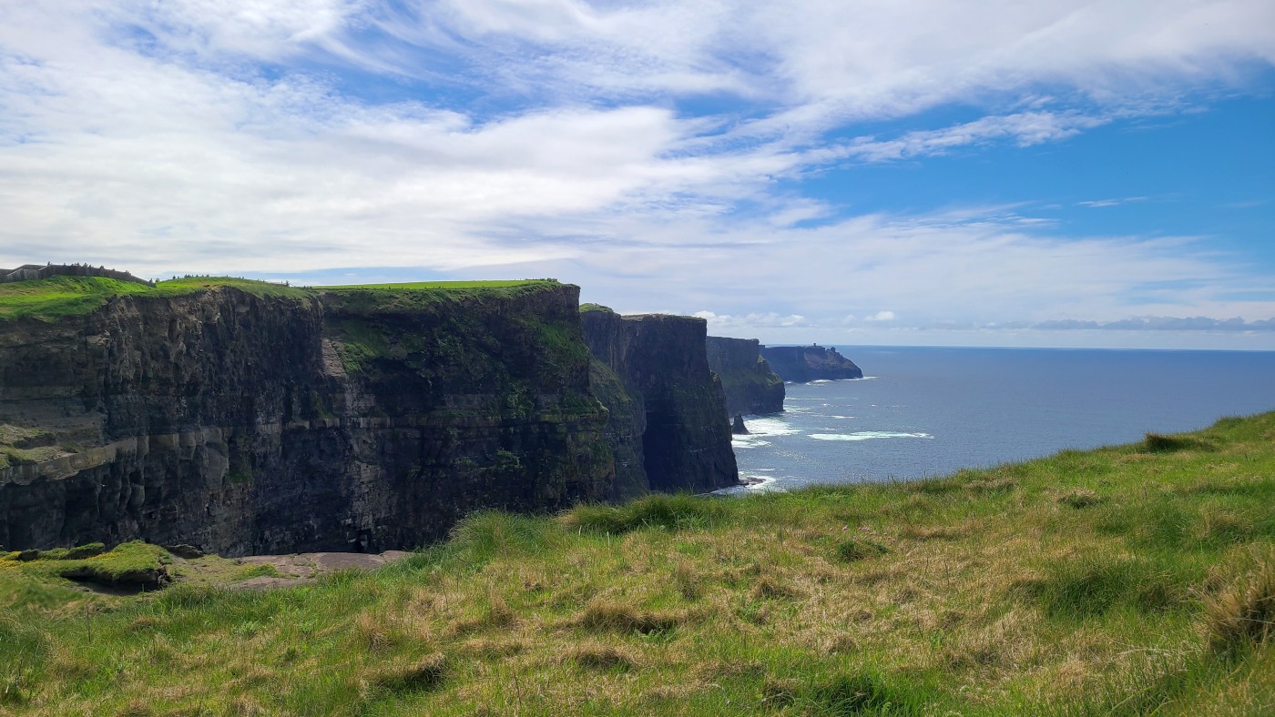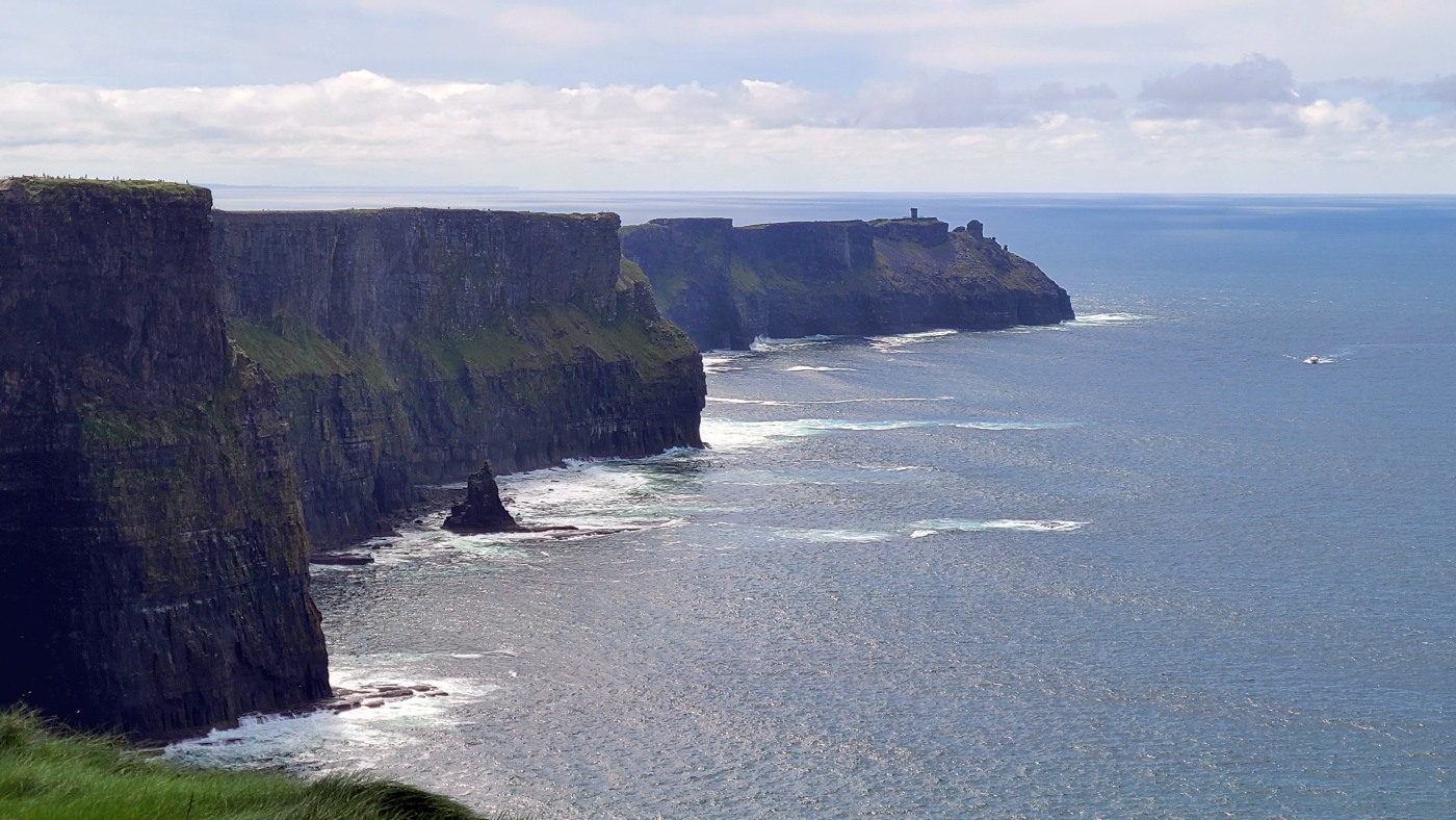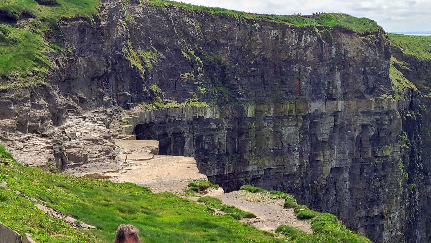 Wir dachten allerdings an unseren gestrigen Ausflug zu den Klippen der Insel Valentia zurück. Sie waren nur mit zwei aufsteigenden Kilometern Fußmarsch zu erreichen und bei weitem nicht so lang, aber fast ebenso hoch und eigentlich atemberaubender durch die Naturbelassenheit. Deren Besucher waren so wenig, dass man sich freundlich grüßte oder sogar ein paar Worte wechselte und der Parkplatz kostete zwei statt nun zwanzig Euro. Letzteres verbilligt für Senioren, wobei ich geschummelt habe und mich als 65-Jährige ausgegeben habe. Erschreckend übrigens, dass man mir das ohne Nachfrage geglaubt hat...