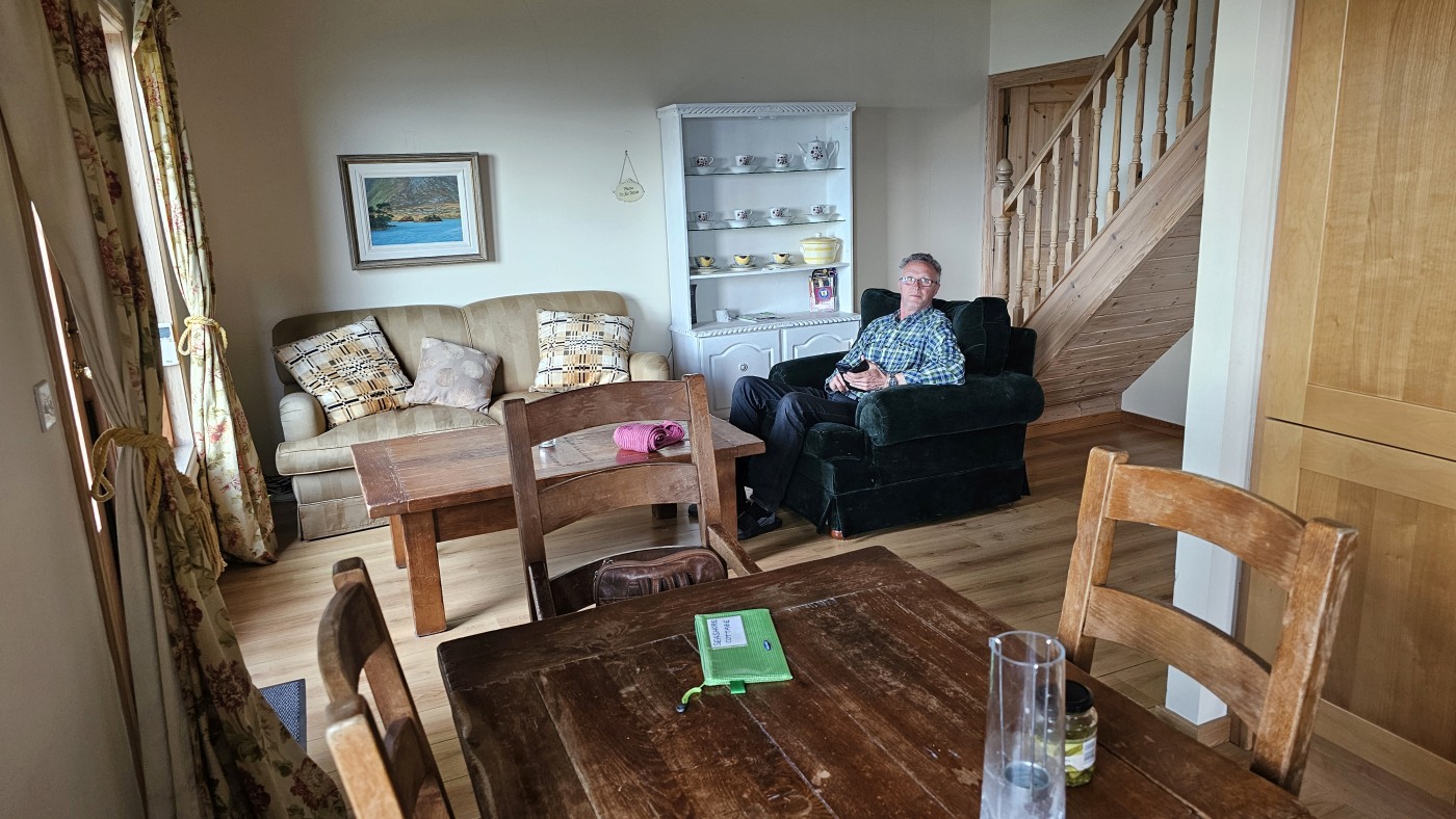 Unsere AirBnB-Wohnung auf einem Hof in Beaufort - das ist ca. 7 Kilometer von Kilarney entfernt - ist geräumig, die Vermieterin Ellie sehr freundlich. Wir werden mit einem Tablett Leckereien begrüßt. Frische Eier, Corn flakes, Sekt, Blumen.