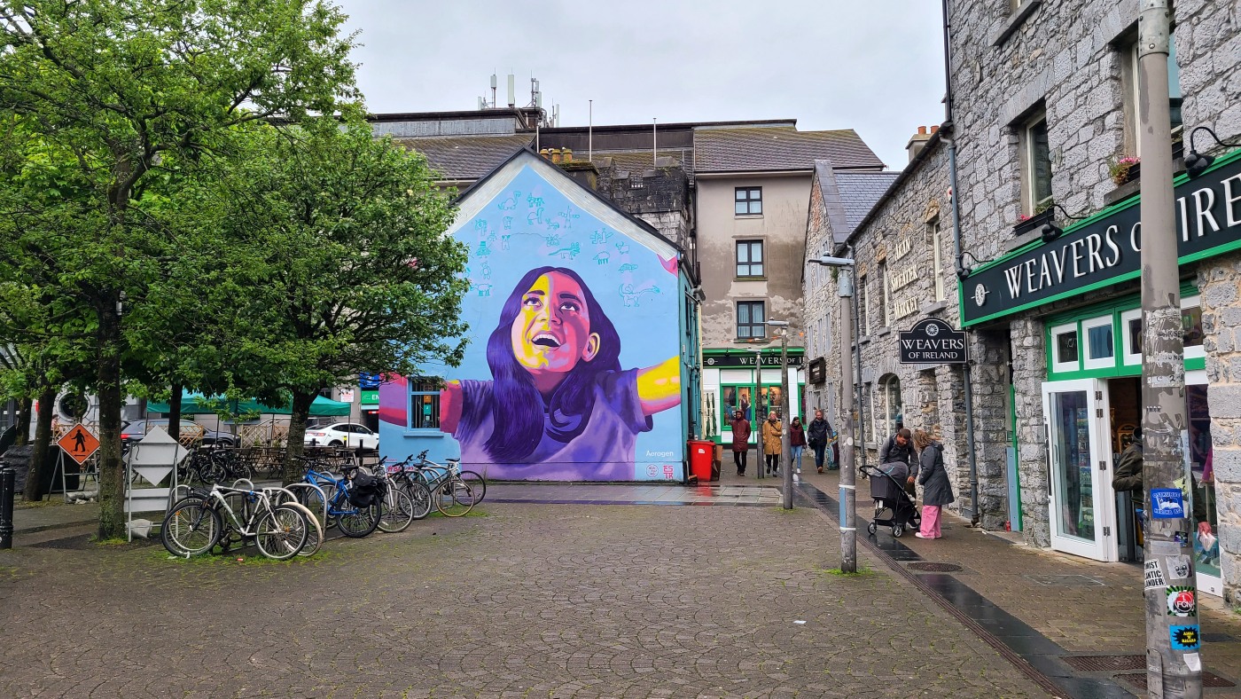 Und noch einmal Stadt: Galway ist nur eine kleine Stadt mit knapp 80.000 Einwohnern, doch Latin Quarter steht dem Dubliner Tempel Bar in Sachen Charme nichts nach. Die Gebäude sind nicht so groß wie in Dublin, doch hier reiht sich - wie in allen kleinen Orten - ein typisch irisches Gebäude ans nächste. Pubs, Giftshops, Irisch woolen market, Restaurants, kunstvolles Graffiti und als besonderes Highlight mehrere Chocolaterien mit so kunstvoll gestalteten Petit fours, Tartes, eindrucksvollen Schokoladenschafen, Trüffeln, frischem Kaffee mit kleinen Mini-Marshmellow als Deko und mehr, dass ich hochachtungsvoll meinen Hut ziehe. Das Design macht hier den Geschmack zur Nebensache.