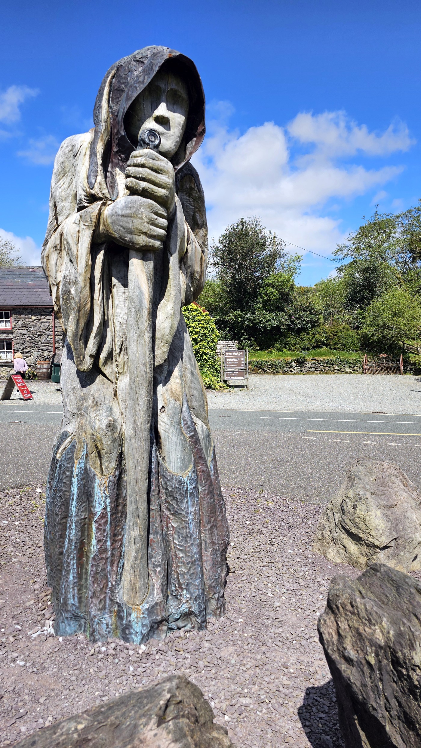 Trotz der sehr engen Fahrbahnen fahren wir heute wieder direkt an der Küste entlang - auf dem Wilde Atlantic Way. Wir stoppen wieder ab und an. Mal für einen kleinen Spaziergang durch den Wald, an einigen Aussichtspunkten für ein Fotos, bei Molly Gallivans Cottage für einen Kaffee und einen Plausch mit zwei Frankfurtern.