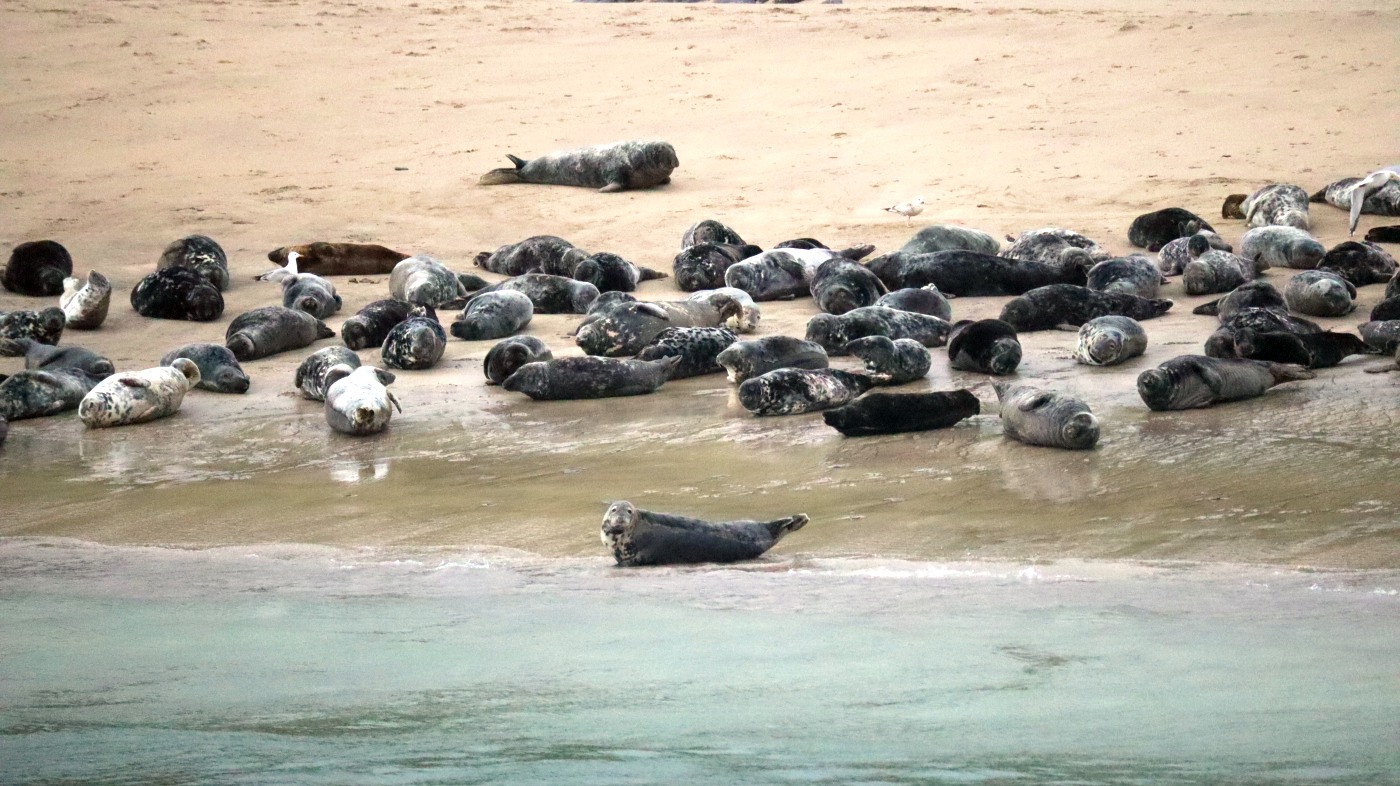 Vier Stunden dauert die Tour und wir treffen auf eine große Familie Define, sehen eine Seehundkolonie und entdecken ein paar vereinzelte Papageientaucher.