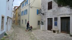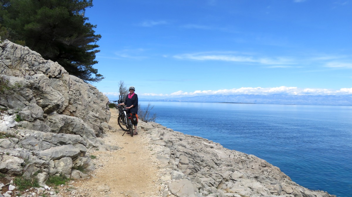 Die Straßen und Radwege sind entweder neu & perfekt oder alt, sehr steinig & holperig. Radwege sind oft nicht durchgehend an den Straßen vorhanden und da an der Hauptstraße nur wenig Fußgänger unterwegs sind, fahren wir oft auf dem Gehweg. Inzwischen kennen wir auch die wenigen Absenkungen der sehr hohen Bordsteinkanten und schlängeln uns sozusagen routiniert nach Mali Lošinj.