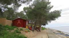 Direkt vor der Küste beginnt das Gebiet der Delfine, das sich bis zur Südspitze erstreckt. In der Hoffnung auf eine Einsatzmöglichkeit für unsere Kajaks gehen wir den Küstenweg ein Stück entlang, doch fündig werden wir nicht. Dieser Weg verläuft direkt an der Küste, vorbei an langgestreckten Pinienwäldern. Er ist so schön, dass wir ihn morgen von Mali Lošinj aus mit dem Rad befahren werden.