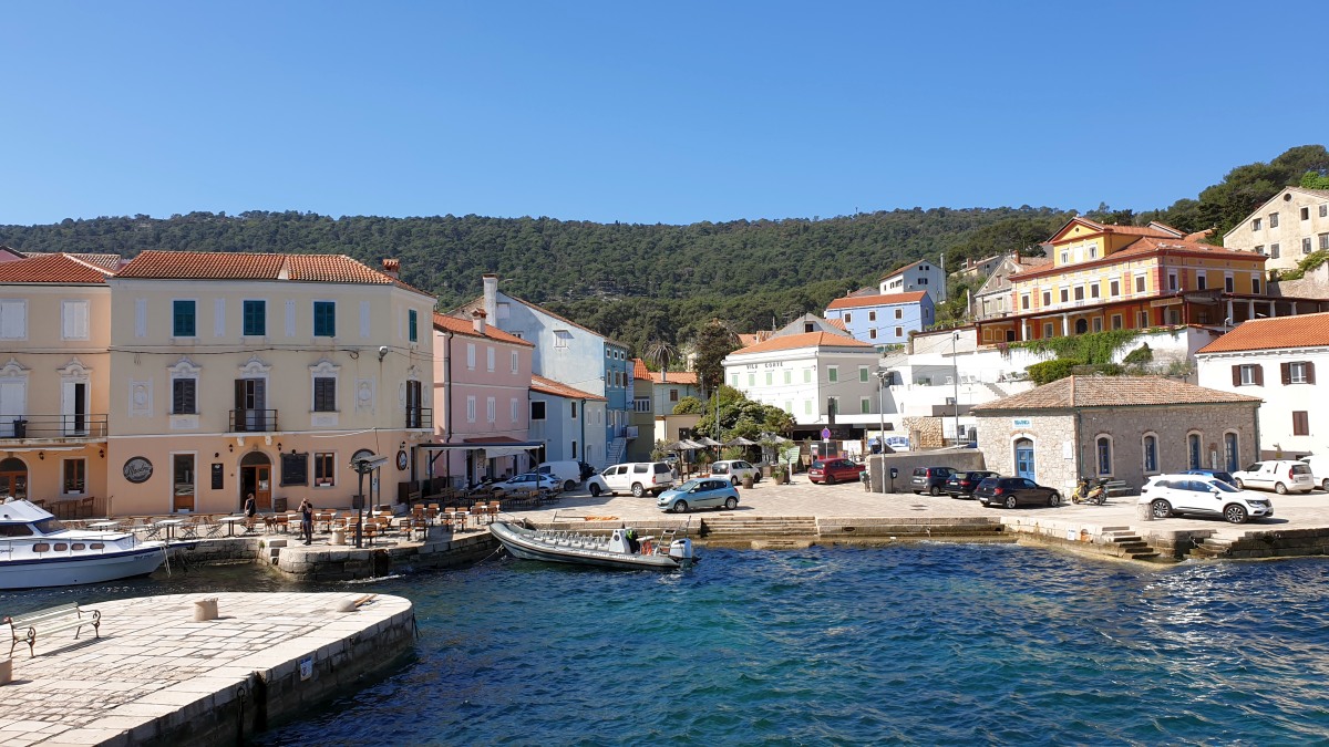 Die Insel Cres ist unser Ziel. In Mali Lošinj wartet ein Apartement auf uns.