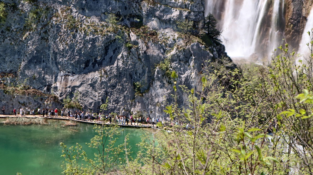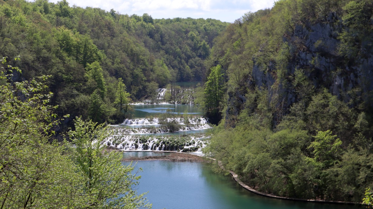 Igor hatte die gestrig geplante Delfinwatchingtour mit "important work" abgesagt. So haben wir uns auf den 250km-langen Weg zu den Plitvica Seen gemacht. Nach 60 Kilometern setzen wir mit der Fähre zur Insel Krk über, anschließend geht es über die Küstenstraße und durch die Berge weiter. Das Ticket für den Nationalpark wird für ein bestimmtes Zeitfenster online gebucht. Einen Parkplatz vor dem Gelände zu finden, ist nicht so einfach. Unzählige Autos und Reisebusse sind vor uns angekommen. Um 12.30 Uhr starten wir unseren Spaziergang zu den Winnetou-Drehorten mit den hohen Wasserfällen und den terrassenförmig angeordneten Seen. Sehr beeindruckend!