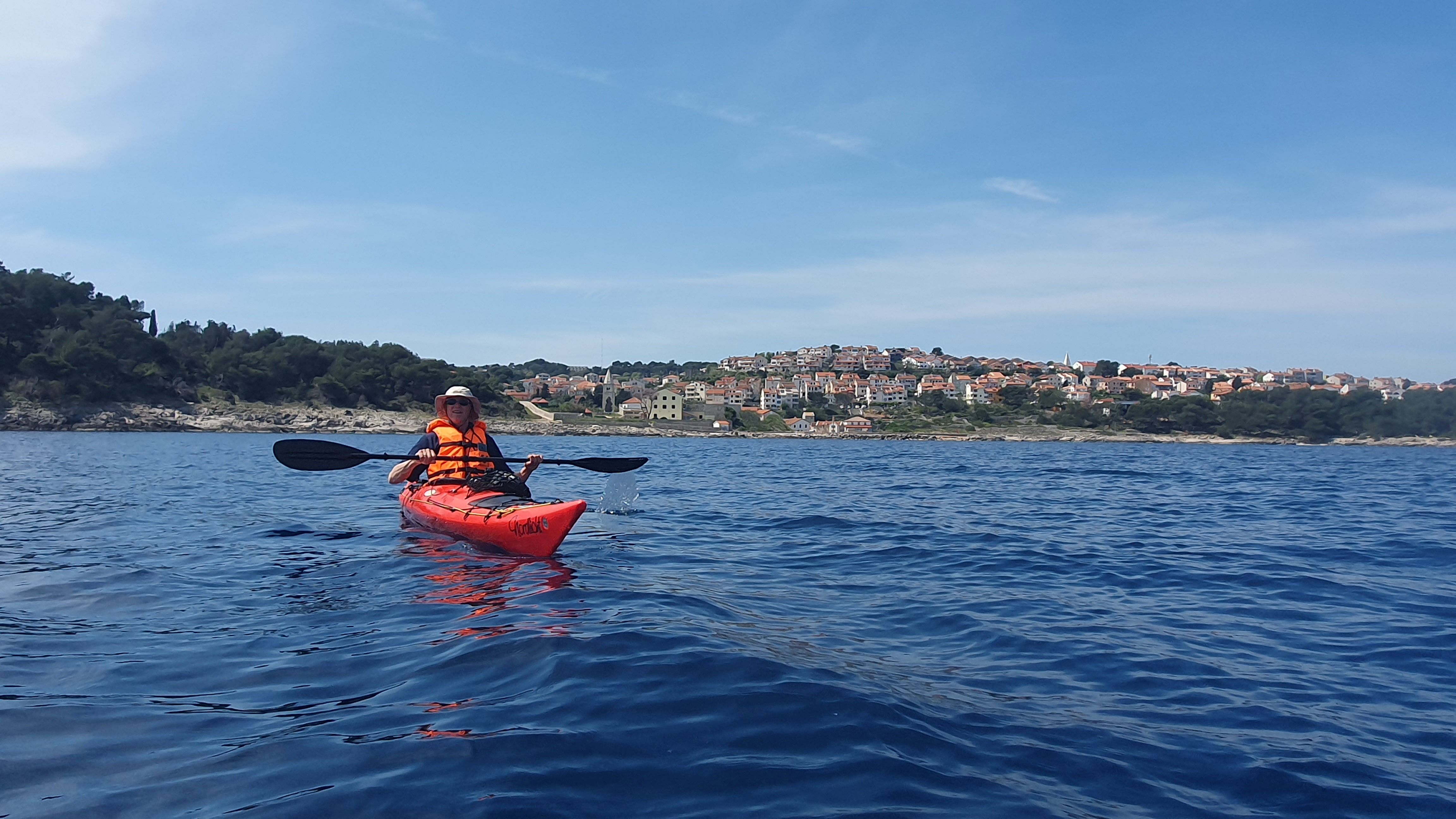 Wir nutzen das schöne Wetter nochmals zum Paddeln. Das Meer ist wieder sehr ruhig, so dass wir uns heute einige hundert Meter weit aufs Meer hinauswagen. Auf dem Weg nach Veli Lošinj auf der Ostseite der Insel treffen wir mal wieder ;) keine Delfine, aber auch beeindruckend: Springende Thunfische zwischen vielen Möwen, die bei dem Spektakel auf einen schnellen Bissen hoffen. Unseren eigenen Hunger stillen wir mit Miesmuscheln sowie hausgemachten Tortellinis im romantischen kleinen Hafen von Veli Lošinj. 16 Kilometer paddeln wir insgesamt. Das ist so ungefähr unsere persönliche Grenze, bevor Schulterschmerzen einsetzen. Igor hat übrigens nicht mehr geantwortet und so sind wir gespannt, ob wir in der Heimat den Lübecker Delfin zu Gesicht bekommen.