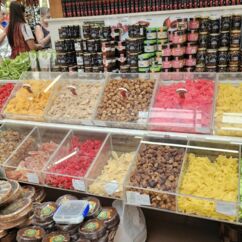 Der Mercado dos Lavradores ist bunt und groß, mit Fisch im Untergeschoss, vielen exotischen Früchten, Blumen, Weinen, T-Shirts, Ketten, Taschen & Co im Erd- und Obergeschoss. Die Preise sind den vielen Touristen angepasst, selbst bei Früchten gilt es aufzupassen. 40 €/kg sind keine Seltenheit.