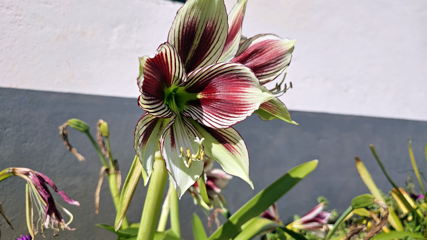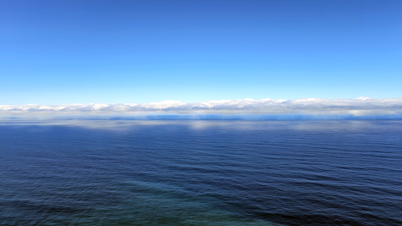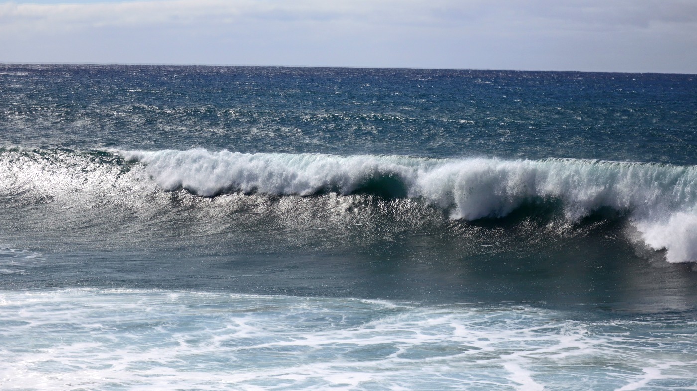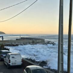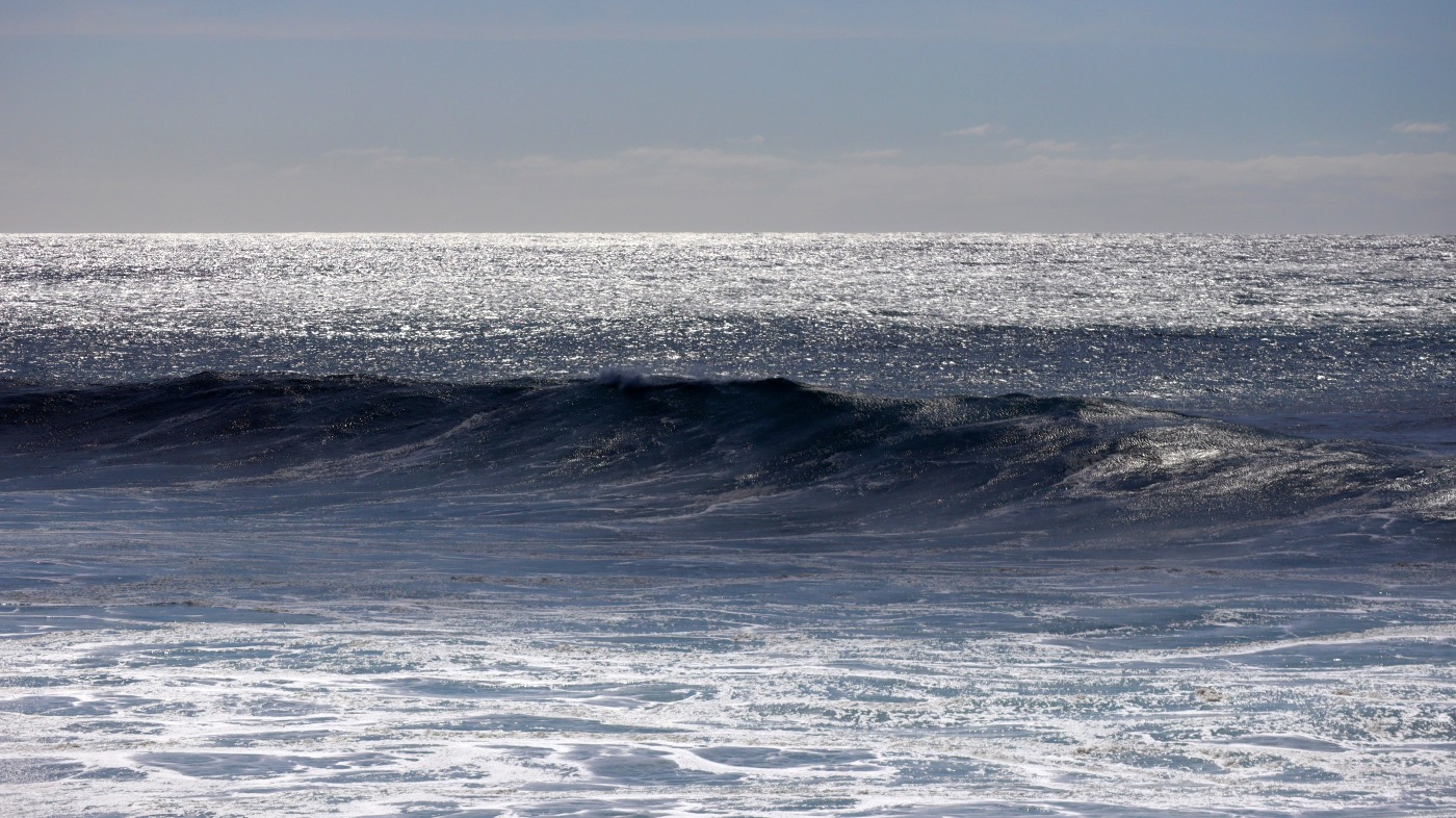 Unser Tag beginnt mit einem Frühstück auf der Terrasse und einem ungewöhnlichen Blick auf den Horizont. Wo normalerweise eine gerade Linie Wasser und Himmel trennt, ist heute eine unruhige wellige Linie. Dort draußen scheinen heftige Atlantikwellen zu toben.