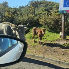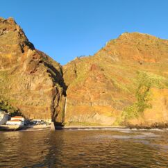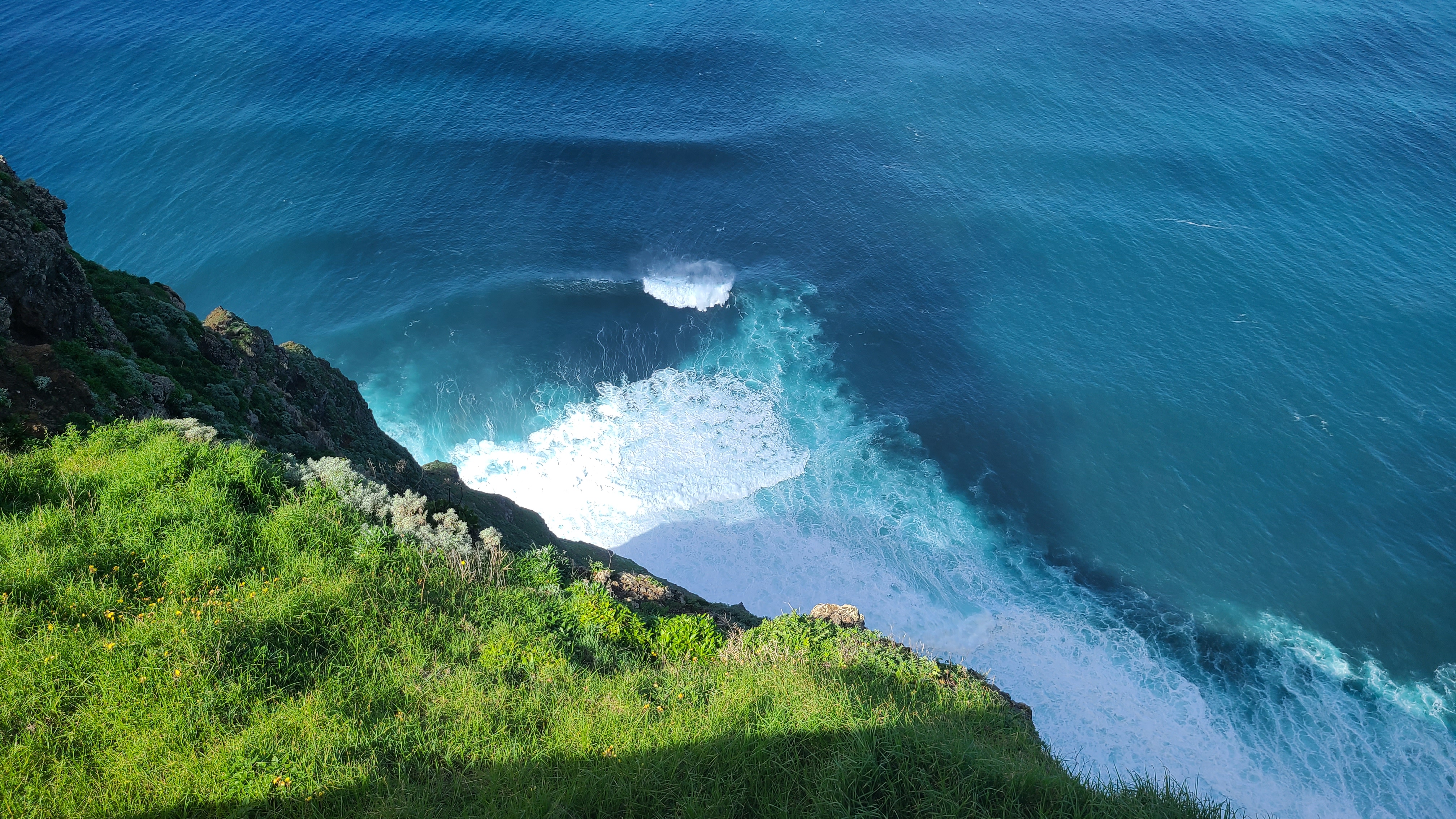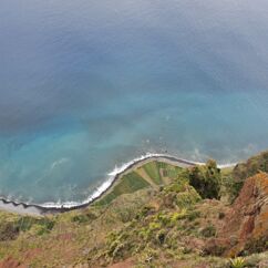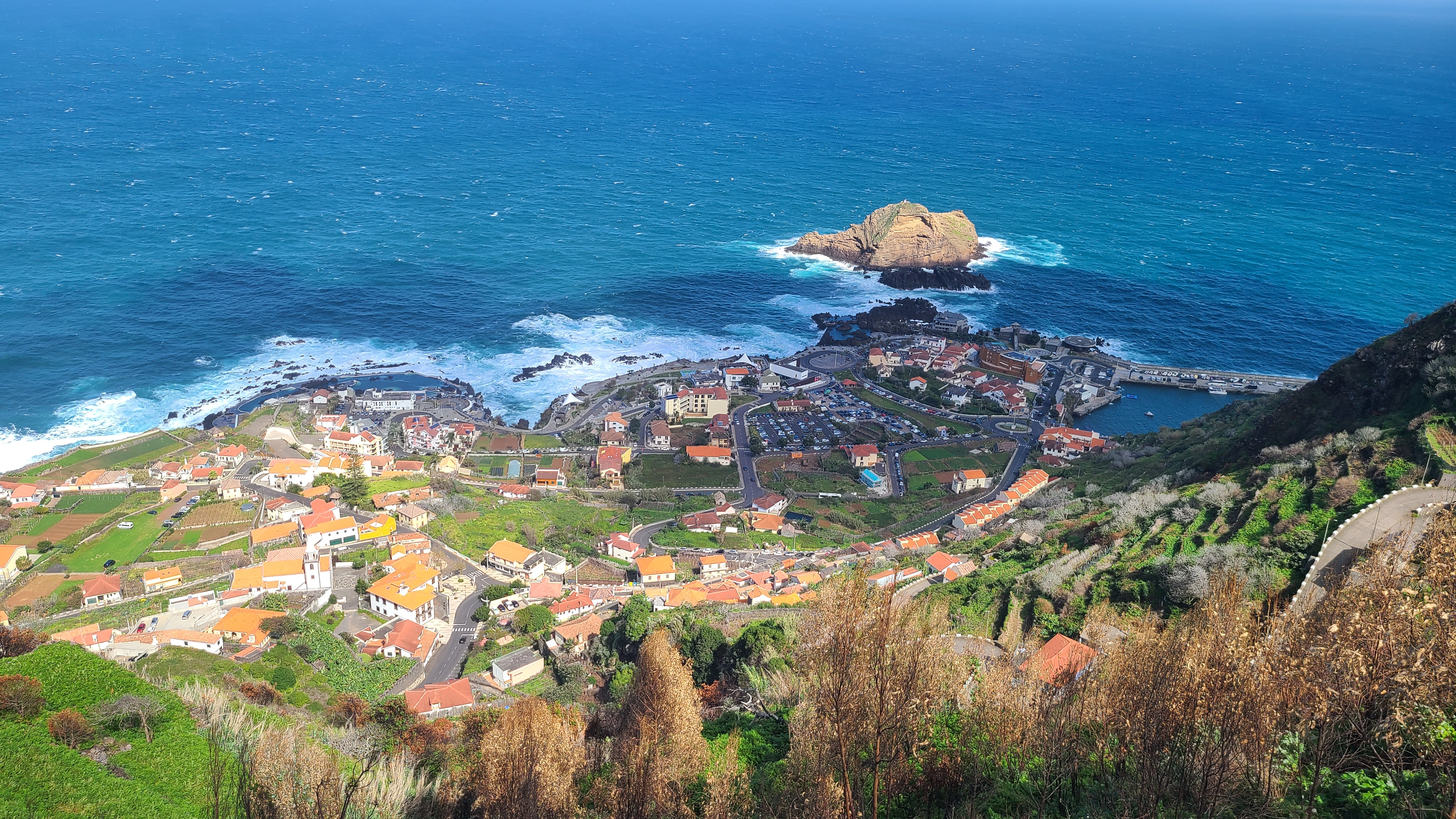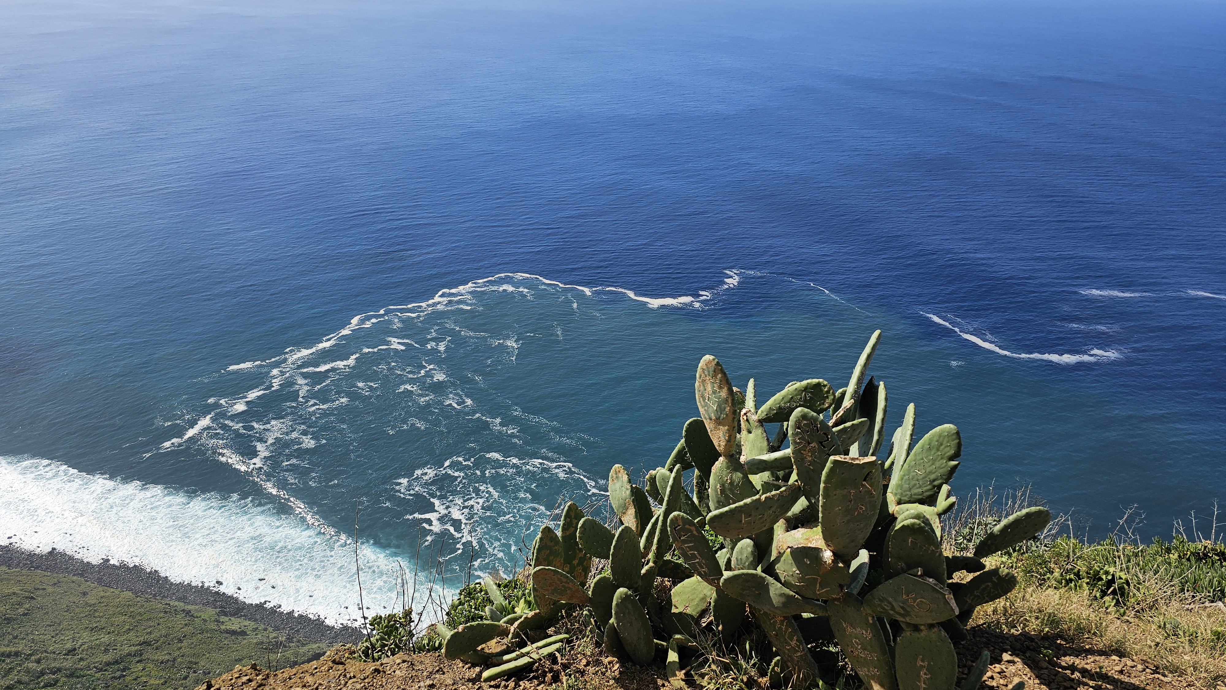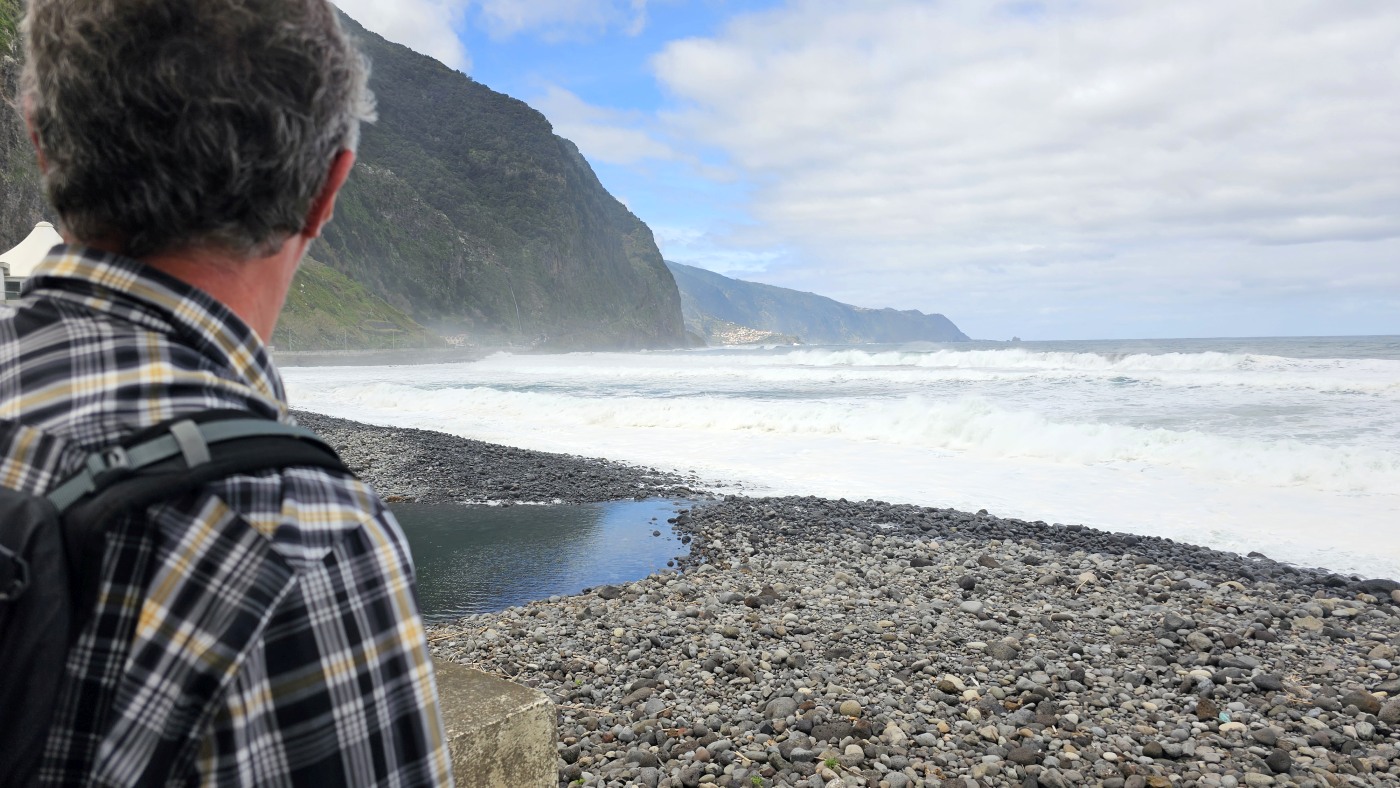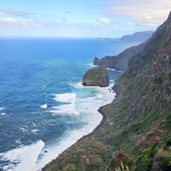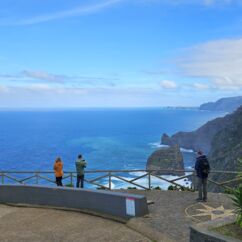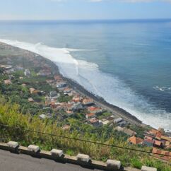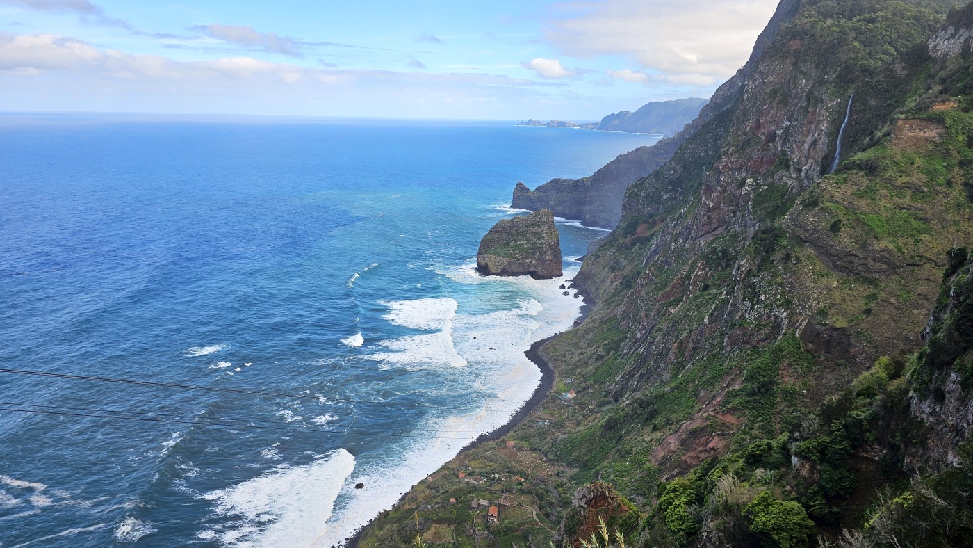 Über Ribeira Brava fahren wir über Schnellstraße und Tunnel nach Sao Vincente, der ersten Station unserer Rundtour durch den Norden. Die Brandung ist spektakulär und wir können bis nach Porto Moniz schauen. Über Ponta Delgado geht es weiter bis zur Seilbahn vor Santana. Sie ist vorübergehend geschlossen, doch der Blick in die Tiefe ist atemberaubend.