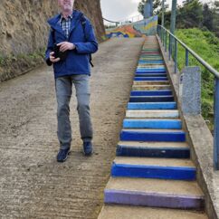 Weiter geht´s zur Caminho do Teleferico, der steilsten Seilbahn Europas. Die Straßenführung dorthin ist abenteuerlich, ich wünsche mir mehrfach Leitplanken, auch wenn Fritz sehr souverän die Strecke meistert. Die Seilbahn ist außer Betrieb - vermutlich wegen des Sturms. Ist in jedem Fall egal, nach einem Blick in die Tiefe wären wir beide nicht mitgefahren.