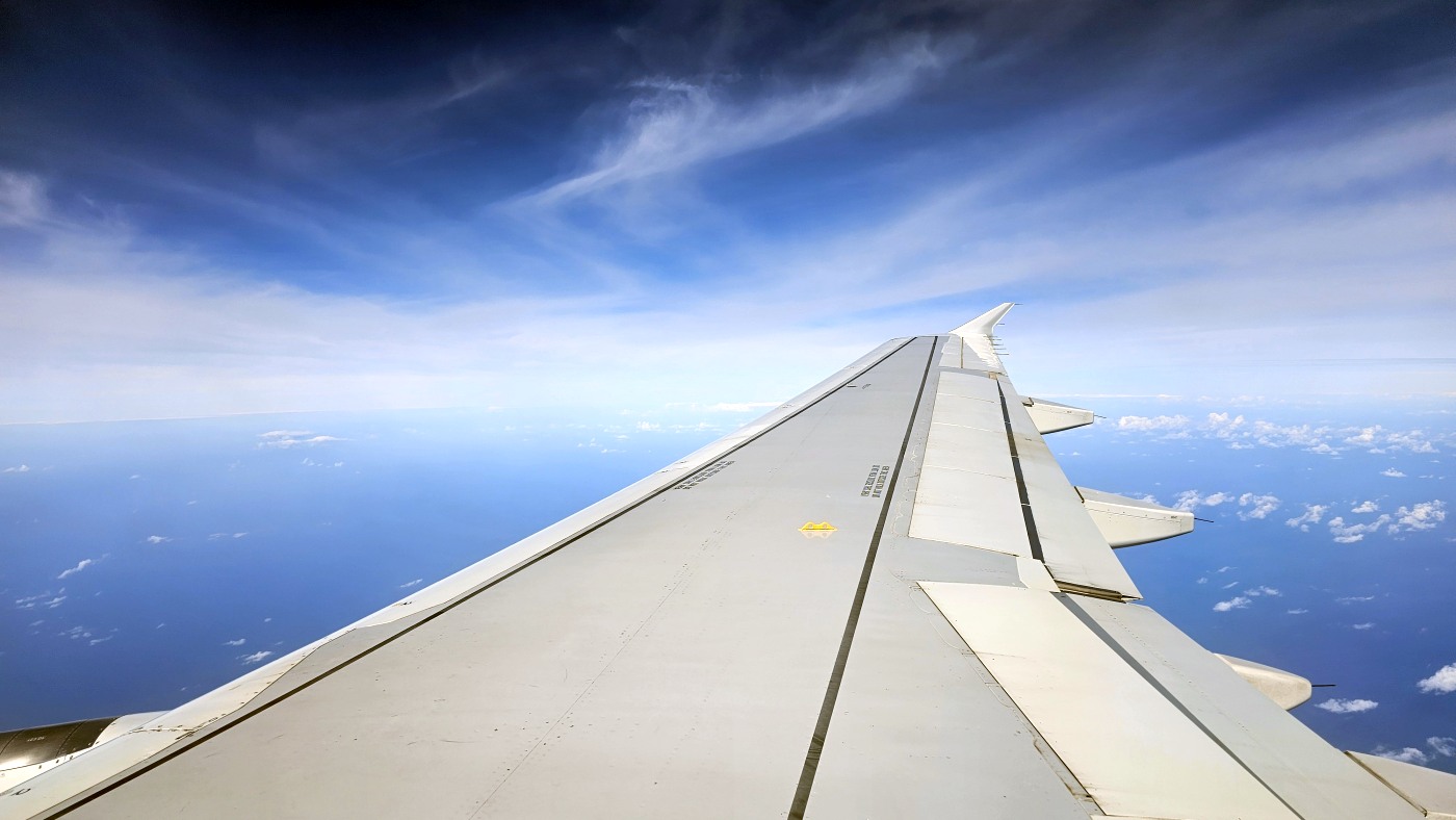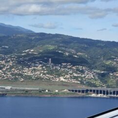 Gegen 8.30 Uhr startet der Condor-Flieger in den grauen Himmel - unser erster Flug seit Corona. Es dauert eine ganze Weile, bis wir über den Wolken sind und endlich Sonnenschein erreichen. Viereinhalb Stunden später kommt die Stelzen-Landebahn Madeiras in Sicht. Die Landung ist für Piloten wohl eine besondere Herausforderung.