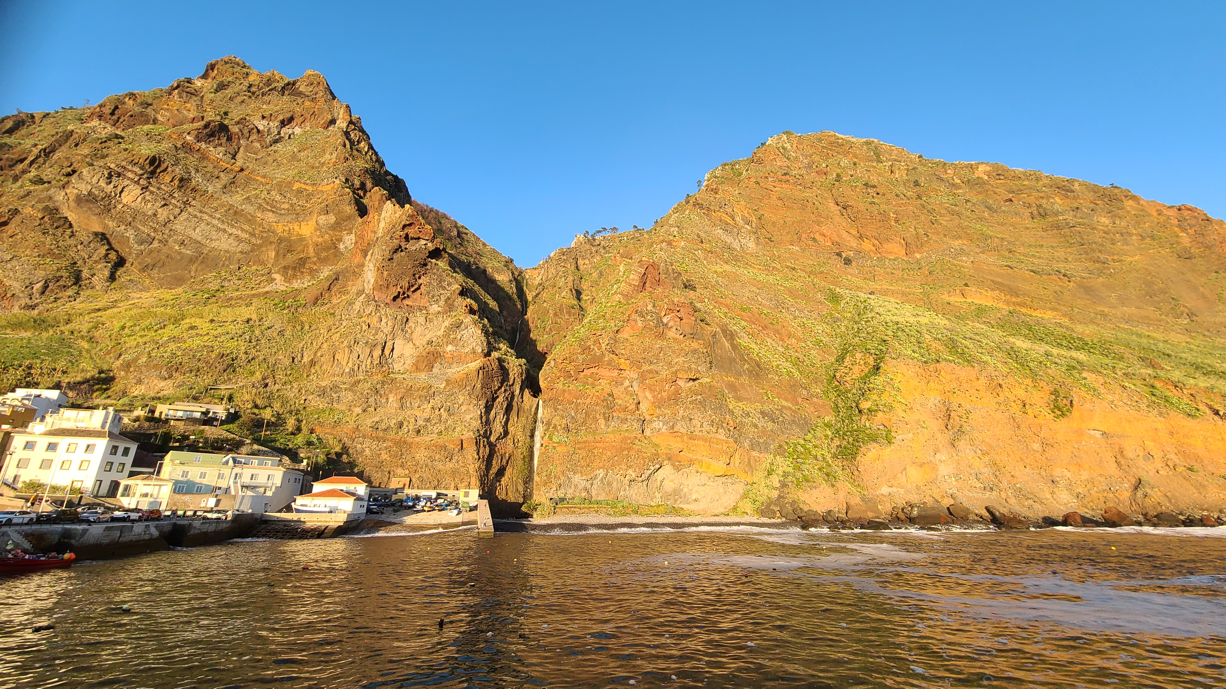 Anschließend schauen wir nochmals im Supermarkt vorbei, denn einige Kleinigkeiten der Küchenausstattung müssen wir unbedingt ergänzen. In Calheta stoppen wir, entdecken eine Badebucht, eine lange Touri-Promenade, excellentes Eis und buchen einen Platz zum Delfin-Watching am Montag.