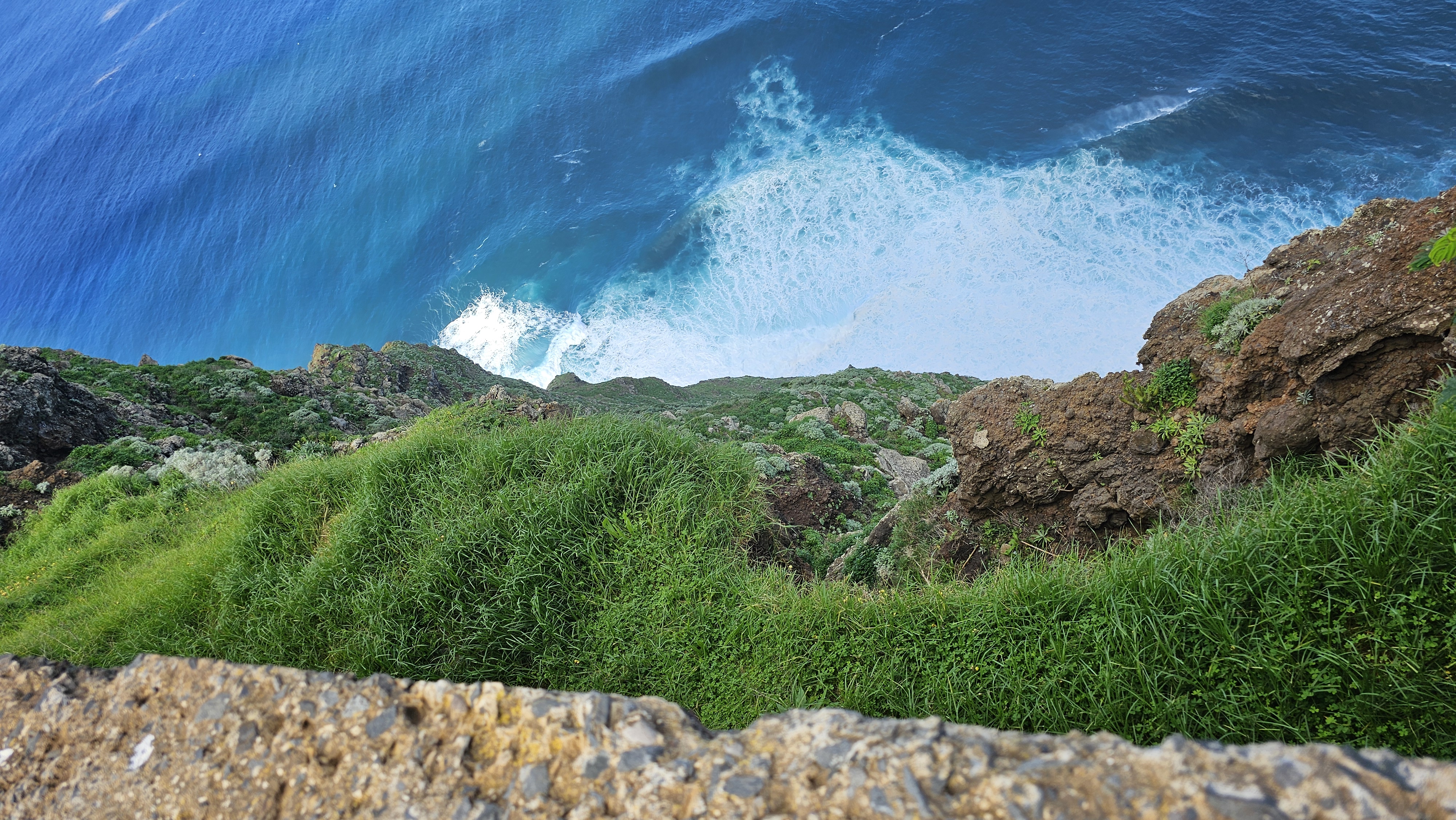 Wir machen eine Rundtour durch den Norden der Insel. Zuerst an der Küste entlang, wieder steil nach oben. In Pargo steht ein schöner Leuchtturm und man kann 305 Meter über der Abgrundkante das Meer unterhalb der Steilküste toben sehen.