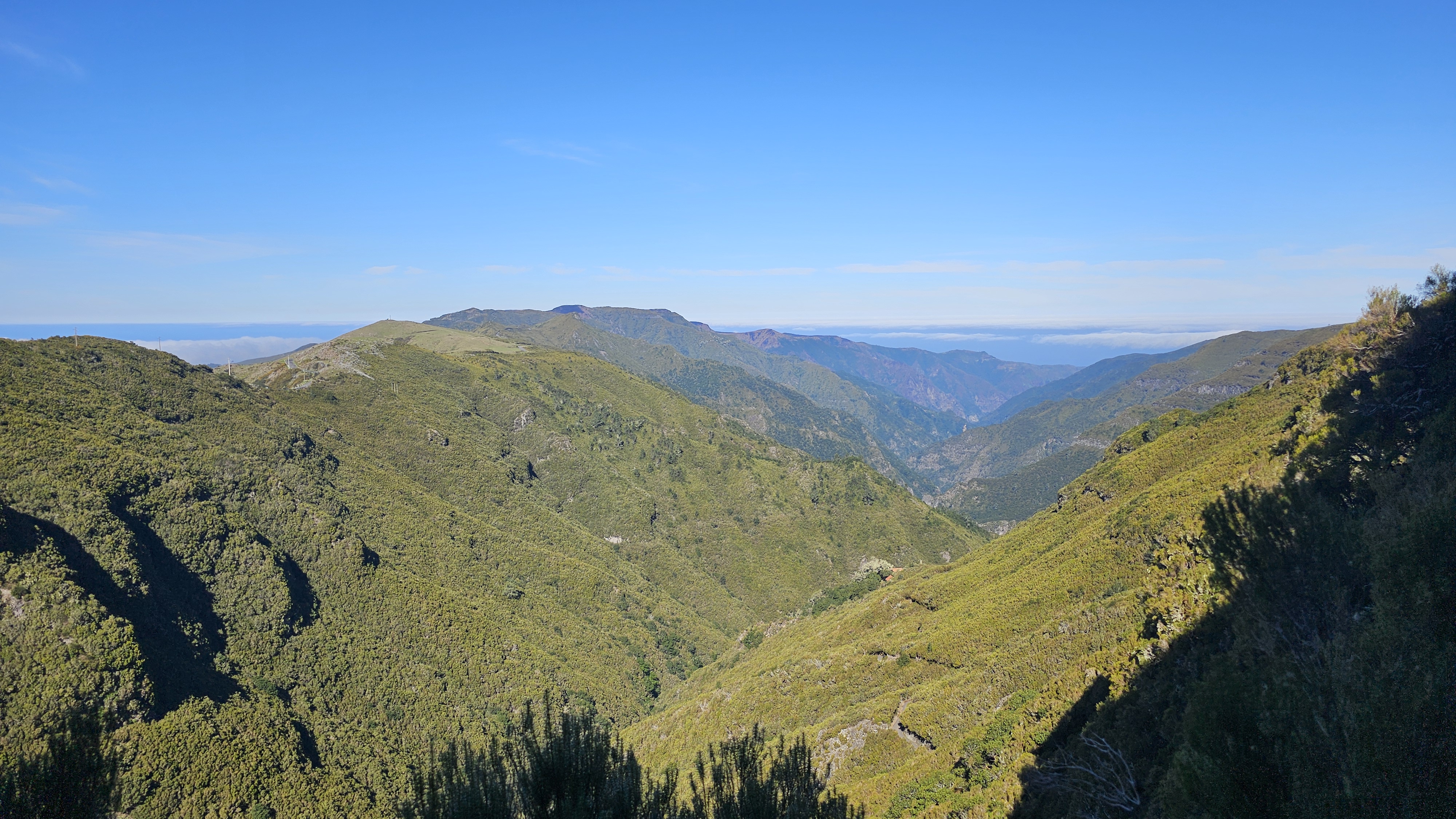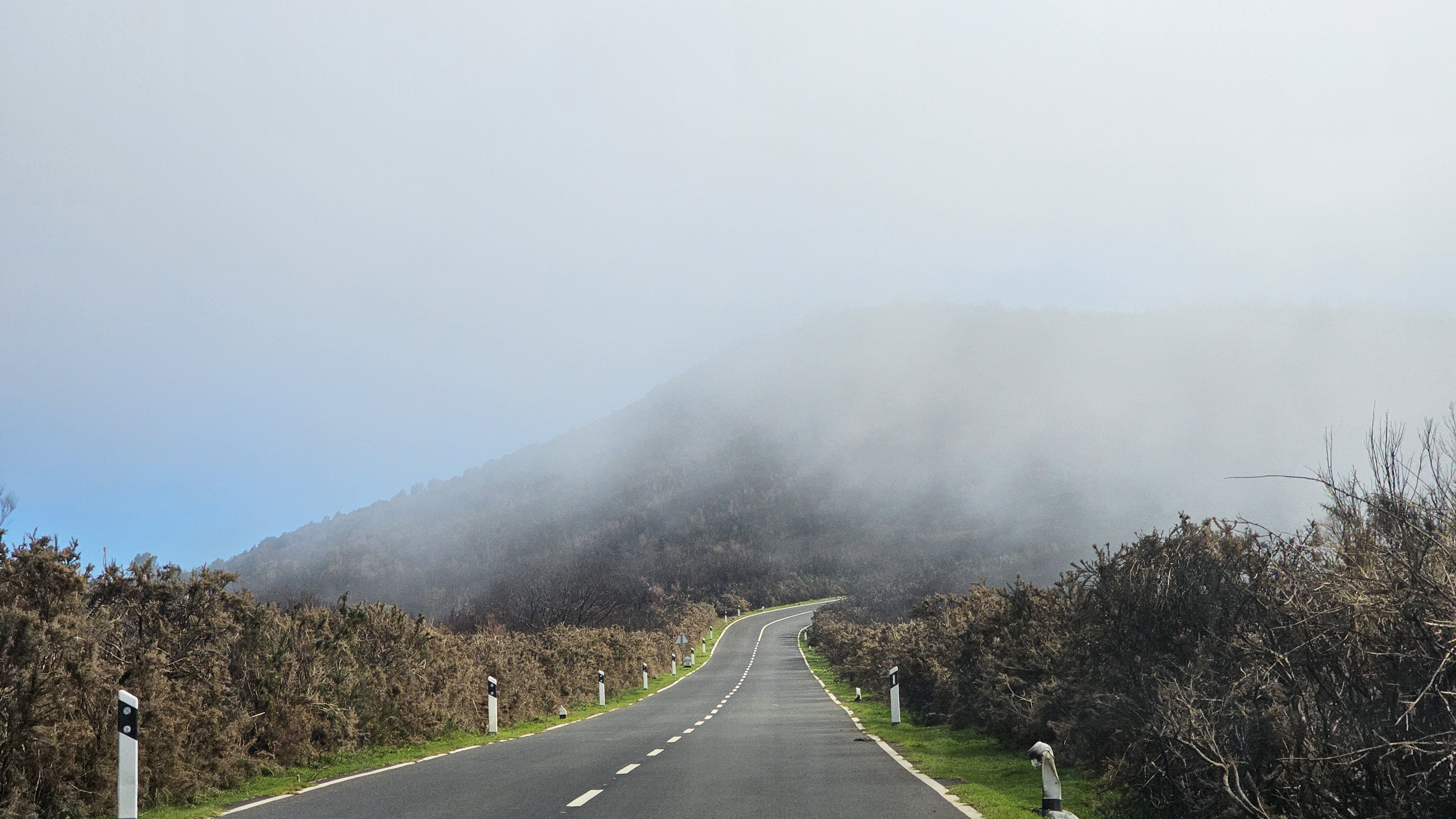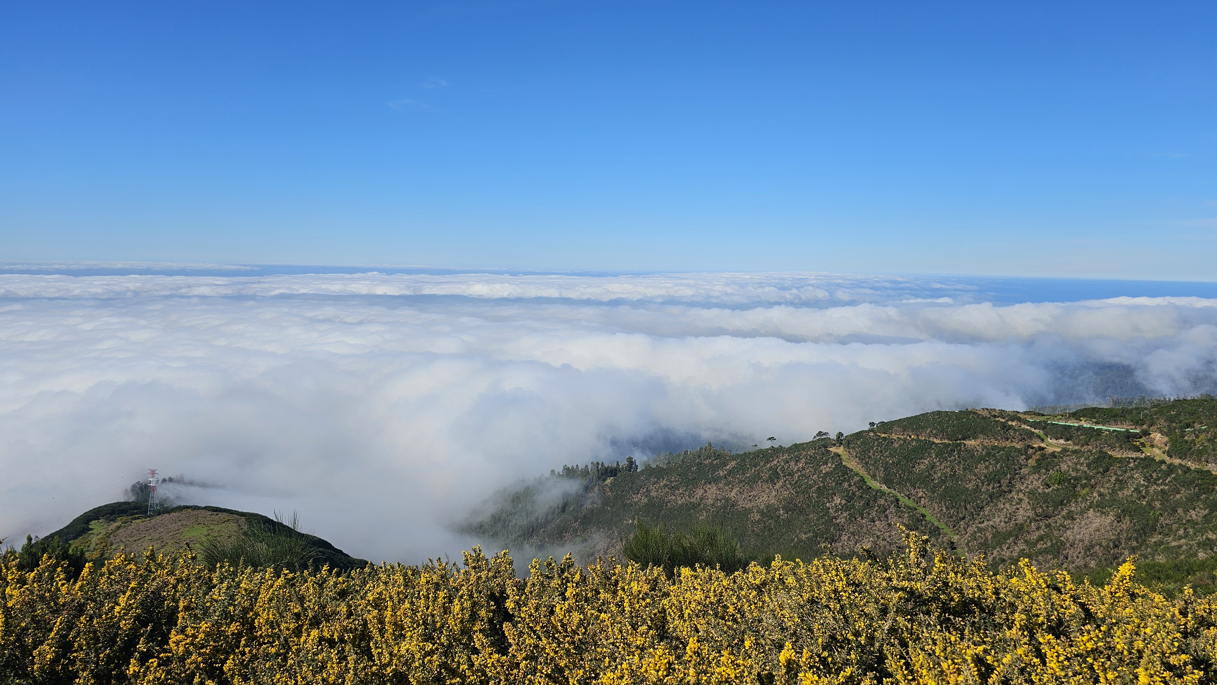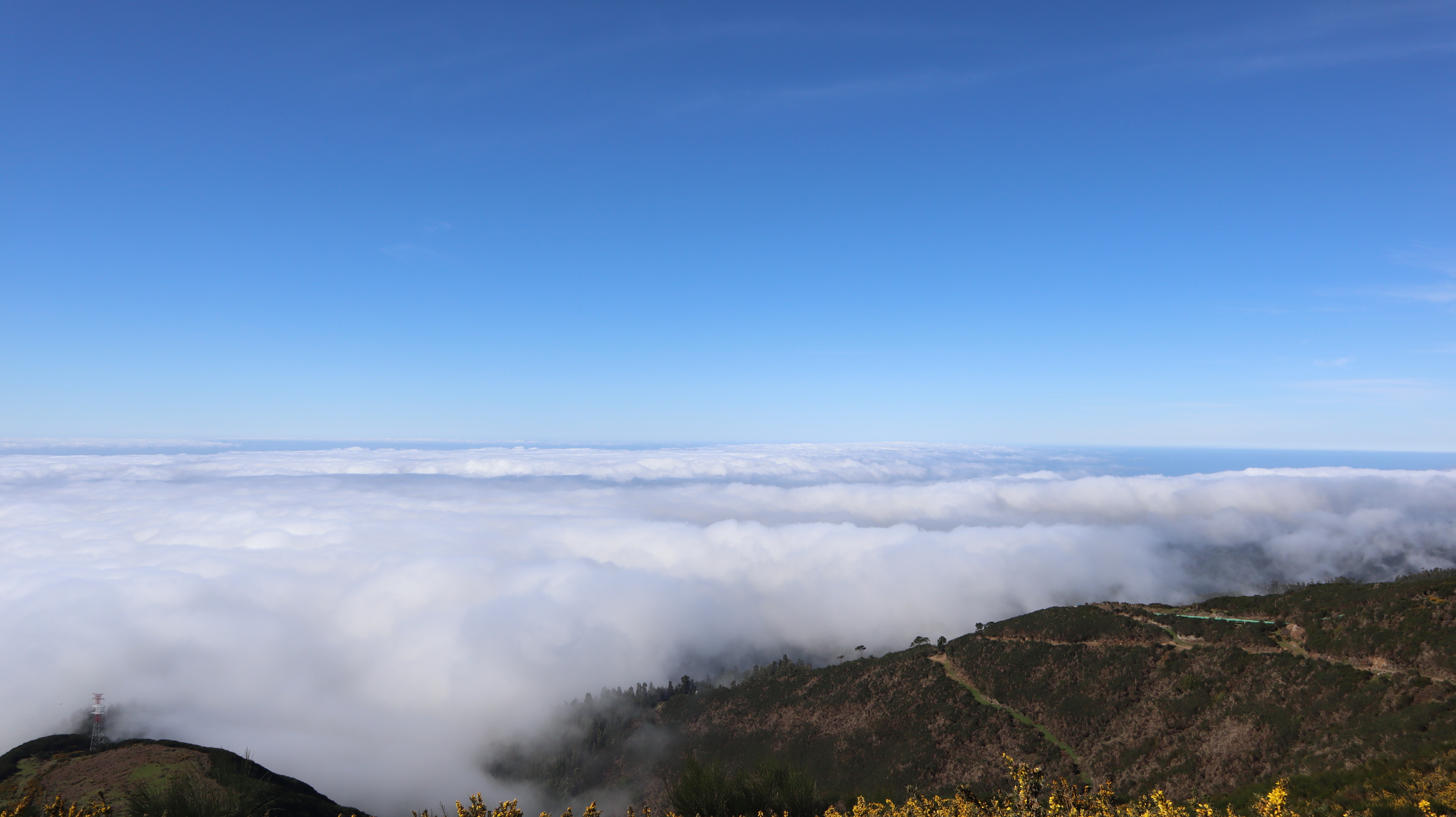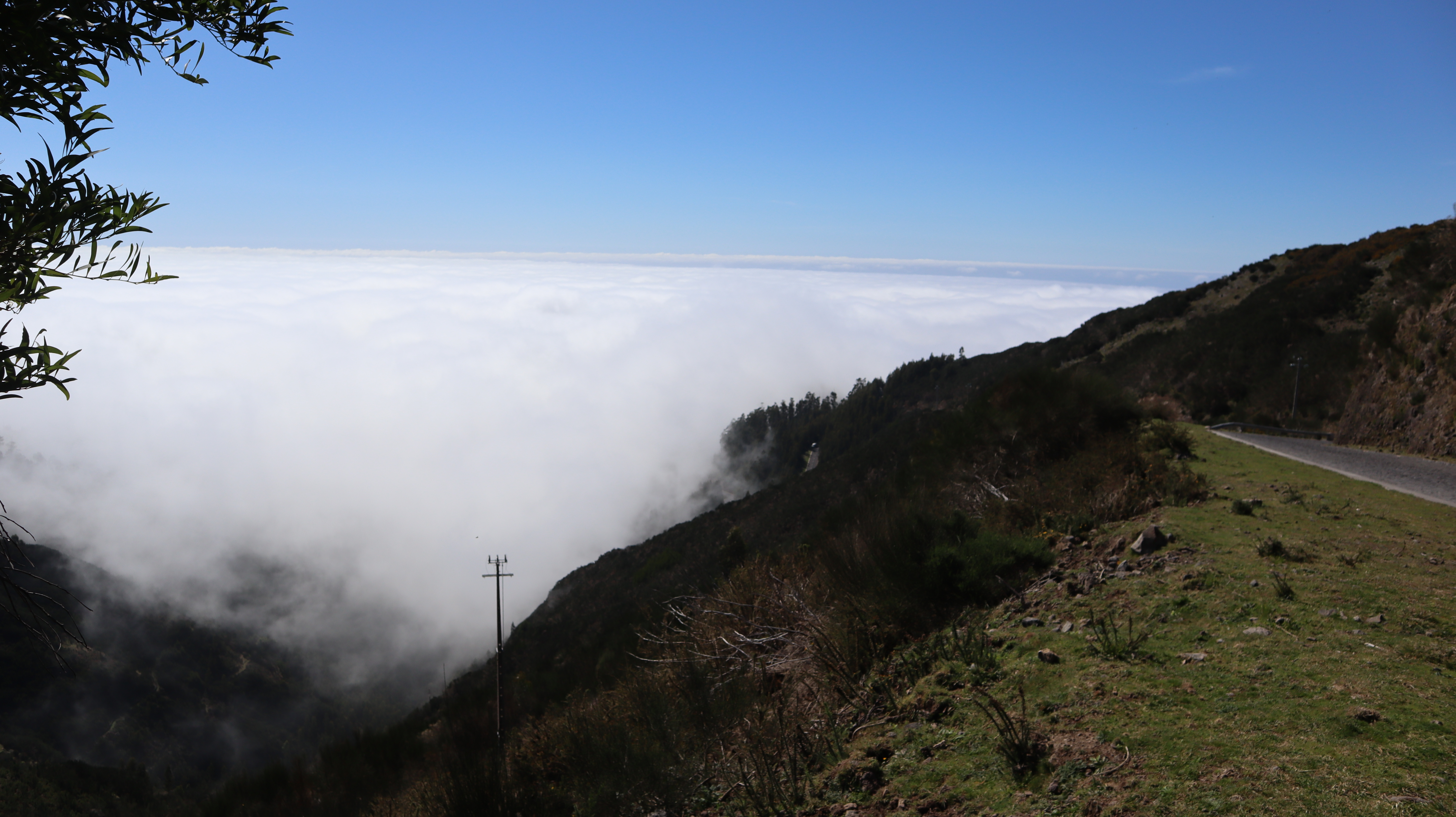 Nach der anstrengenden Wanderung lassen wir uns von einem kleinen Shuttle-Tansporter zum Parkplatz mitnehmen. Der Rückweg nach Paul do Mar über die Berge bietet weite Ausblicke, wir sind hier tatsächlich über den Wolken.