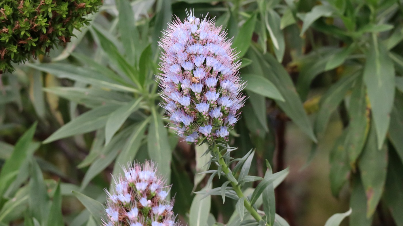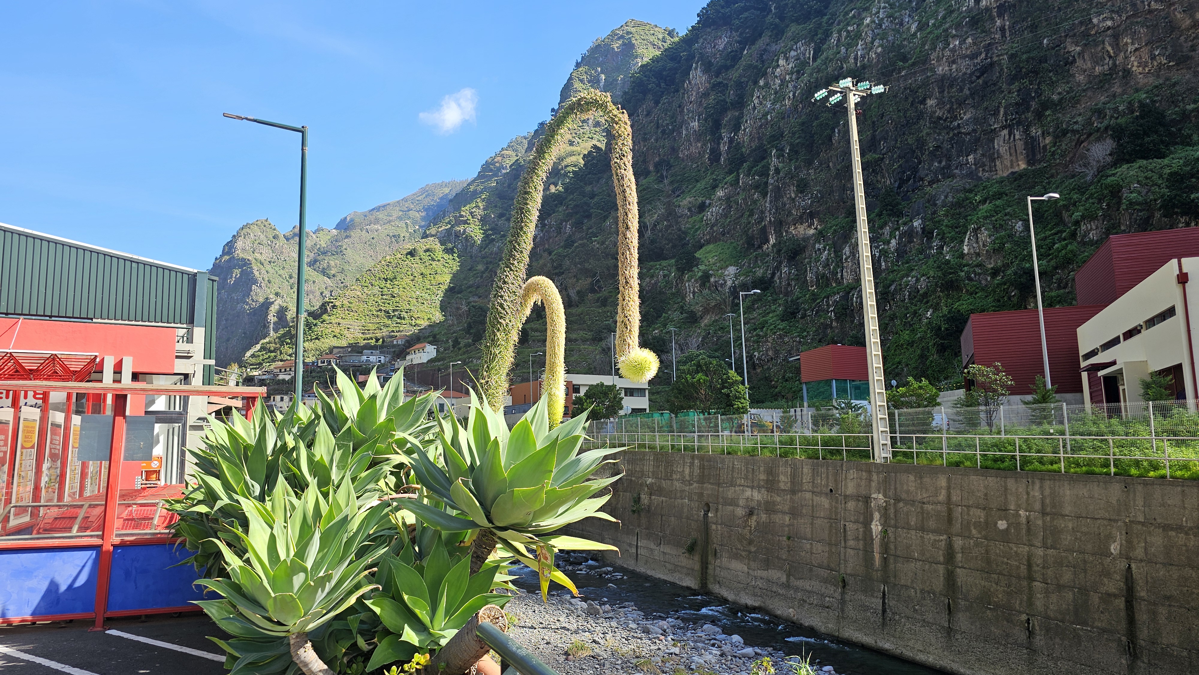 Wir laufen heute eine neue Levadaroute durch die mit Farnen bedeckten Berge und den verkohlten Baumstämmen, die wir bereits bei unseren ersten Ausflügen gesehen hatten. Der Weg dorthin ist wieder voll explodierender Vegetation, auch mit uns noch unbekannten Blumen, die nun im Frühjahr ihre Knospen öffnen. Ein Berliner Paar erzählt uns, dass der Brand erst im letzten Oktober gewütet und viele Berghänge betroffen hatte. Angesichts dieser kurzen Zeit hat das Grün schon wieder heftig an Überhand gewonnen.
