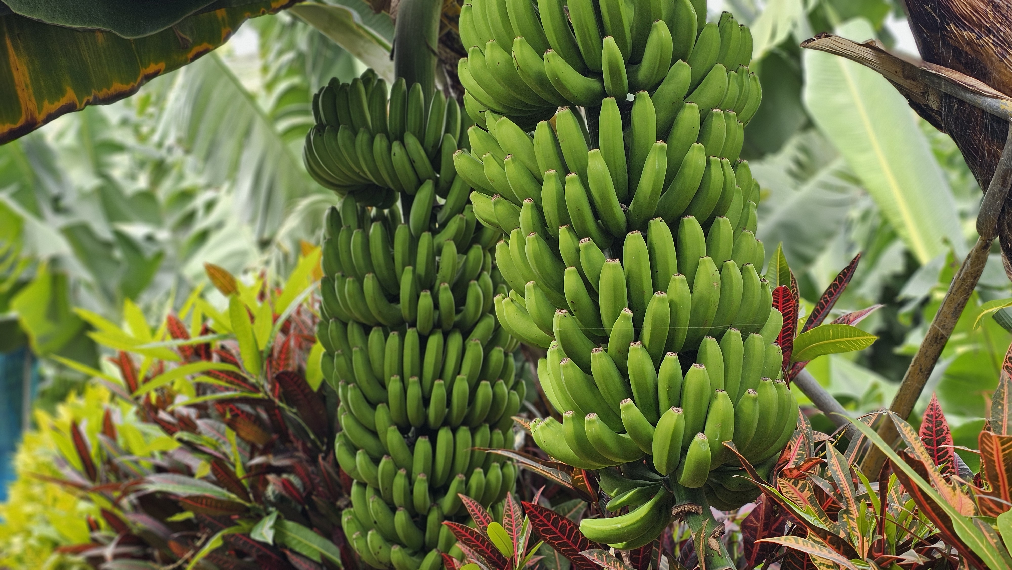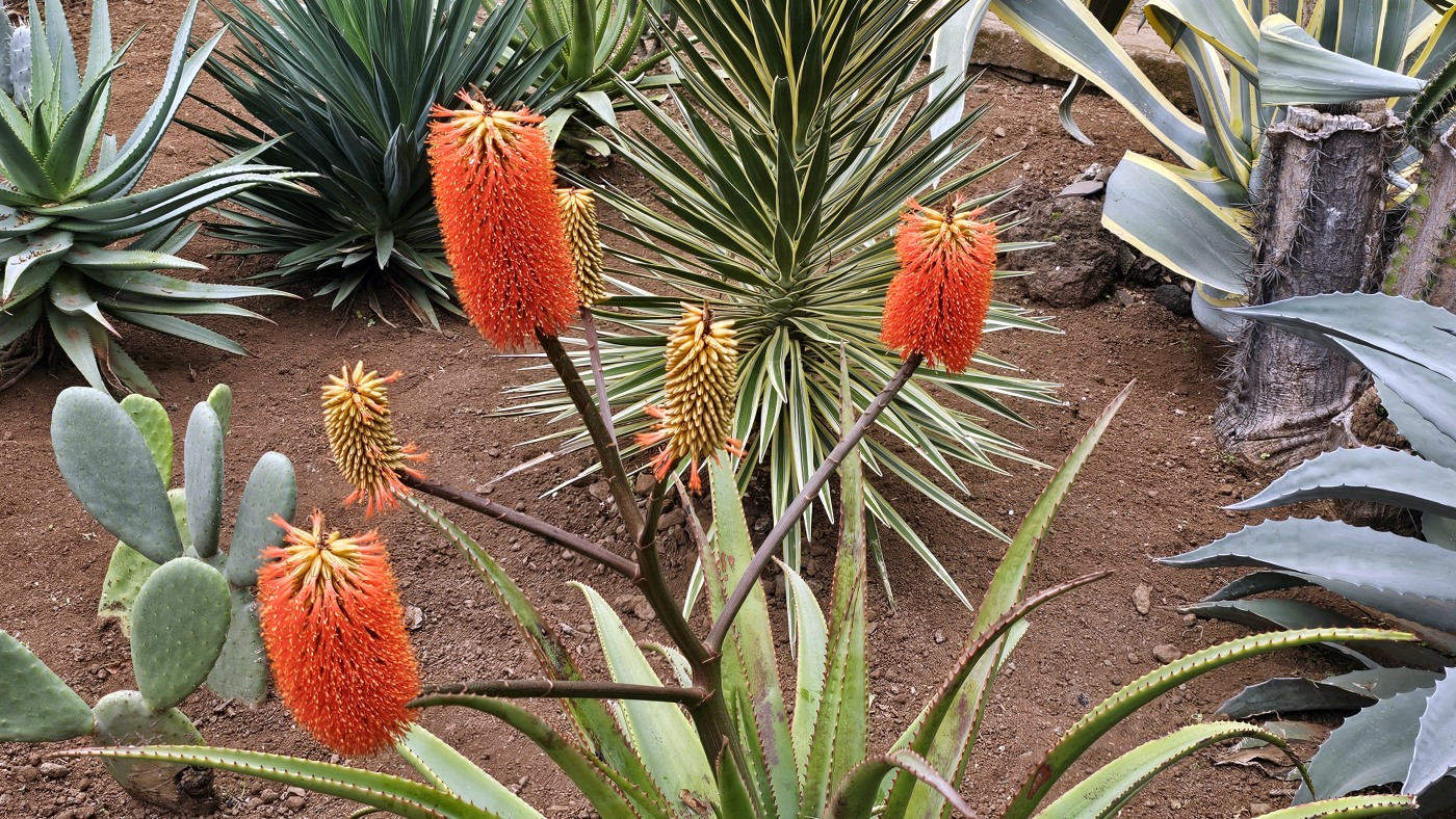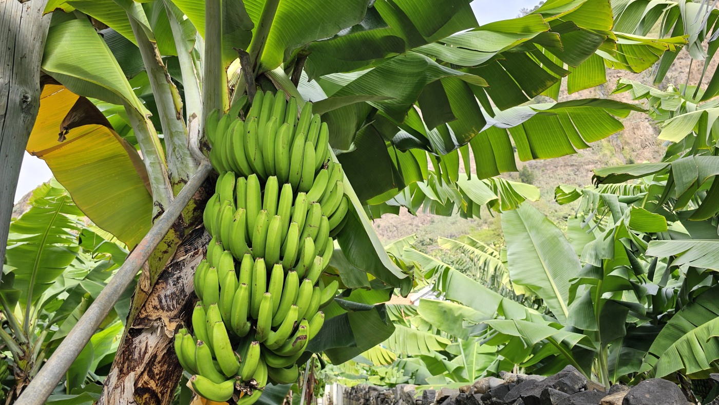 Die Berge um uns herum sind mit üppigster tropischer Vegetation ausgestattet. Es gibt kaum einen Fleck, der nicht bewachsen ist. Baumfarne, Bäume, Kakteen, Sukkulente, Palmen und Blumen soweit das Auge reicht. Überall wo es die Steigungen zulassen, haben die Menschen bepflanzte Terrassen angelegt mit Bananen, Wein, Getreide, Kartoffeln, Gemüse, Zitronen, Orangen, Avocados, Maracuja, Papaya, Zuckerrohr, Annonen, Drachenfrucht und mehr. Die meisten tropischen Früchte haben wir bereits probiert und ich habe für die Heimreise bereits einen stattlichen Vorrat an Samen gesichert. Besonders die saftigen Annonen mit einem ganz eigenen Geschmack haben es mir angetan, hoffentlich bekomme ich in Kronsforde ein Bäumchen herangezogen.