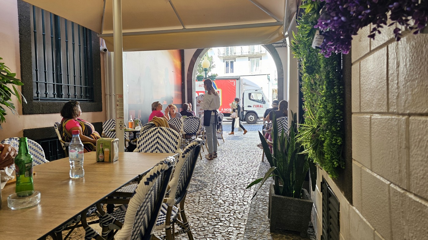 Wir erkunden die nähere Umgebung und landen gegen Mittag im Nachbarort Madalena de Mar. Der Ort ist auf den ersten Blick so ursprünglich wie Paul do Mar, nur wenige Neubauten. Doch hier treffen wir beim Mittagessen auf einige Touristen der First Class. Sportwagen, junge Frau mit altem Kerl, richtig schöne Mode, höhere Preise für unser Mittagessen, aber trotzdem noch alles sehr nett.