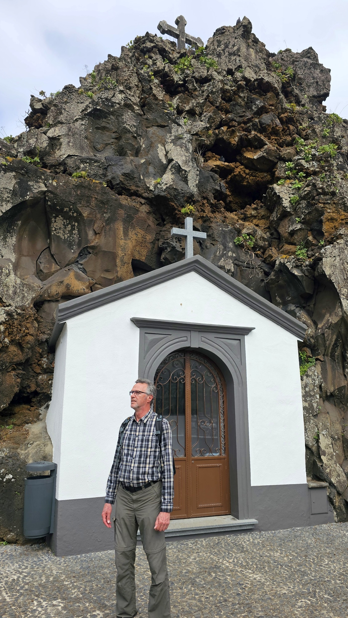 Fritz hat für heute eine Levada-Wanderung in ca. 630 m Höhe mit nur 30 m Höhenmetern herausgesucht. Ehrlich gestanden ist mein Bedarf an Steigungen und Treppenstufen langsam gedeckt. Wir entdecken unterwegs wieder viele Blumen, Orangen- Zitronen- und sogar Avocadobäume. In einer kleinen Taverne in Maloeira essen wir die erstem Empanadas unseres Lebens. Fritz Teigtasche ist mit Hackfleisch, meine mit Hühnchenfleisch gefüllt.