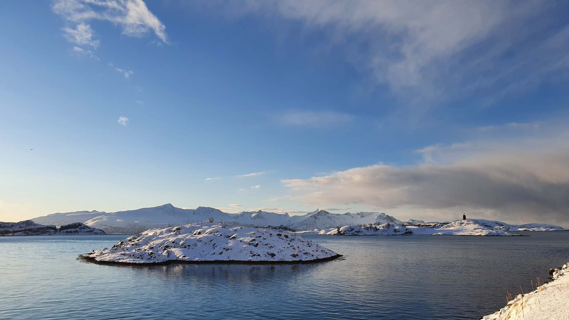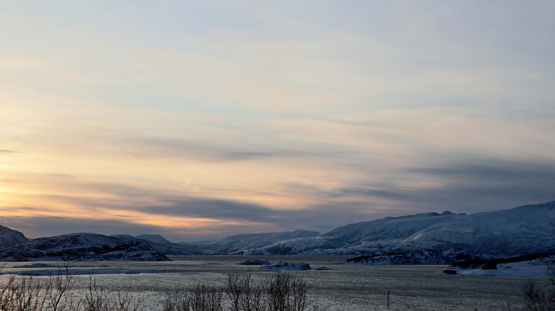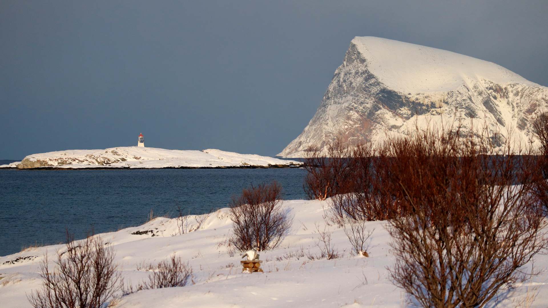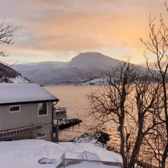 Das fast durchgehend sonnige Kvaløya im Süden kennen wir noch nicht. Dort ist nur derjenige im Schatten, der sich gegenüber der hohen Festlandberge aufhält. Dort wo die Sonne es auf der anderen Seite des Fjords noch nicht über die Berggipfel schafft.