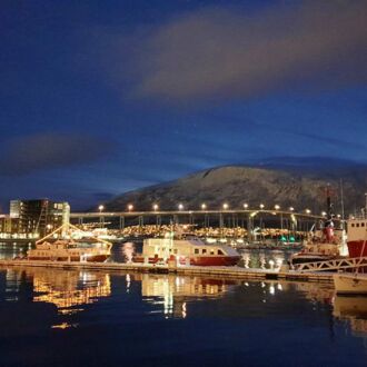 Bereits gegen 15.00 Uhr wird es langsam dunkel. Beim ersten Blick auf Tromsø ist der Himmel bereits tiefschwarz.