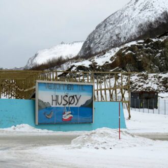 Wir starten eine kleine nördliche Tour auf der 862. Die Berge sind so mächtig, dass die Straße meist am Ufer verläuft, gelegentlich durch Tunnelabschnitte hindurch. Viel mehr Straßen gibt es nicht, die nächsten 50 Kilometer zweigen lediglich noch vier Sackgassen von der 862 ab. Die Fv277 ist die erste dieser Sackgassen, ist gut 10 Kilometer lang und führt über die Berge zum Fischerdorf Husøy. Mit Sonnenschein im Rücken fahren wir auf das im Meer liegende Dorf zu.