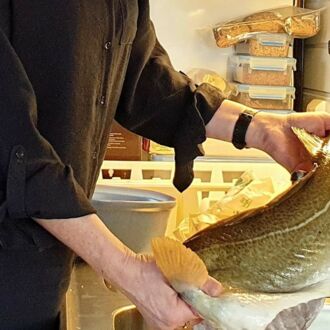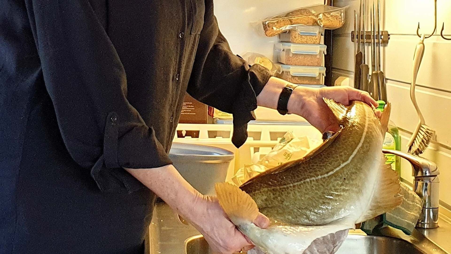 Er erzählt, seine Frau würde Hütehunde züchten und hätte eine Herde isländischer Schafe. Strahlend verweist er dabei auf seine Handschuhe, die sie ihm aus der Wolle ihrer Schafe gestrickt hat. Sie seien durch das natürliche Lanolin wasserabweisend und warm genug für die Arbeit auf dem Kutter. Während er unentwegt erzählt, fischt er uns drei Dorsche aus einem großen Trog, in dem der Fang des Tages liegt.
