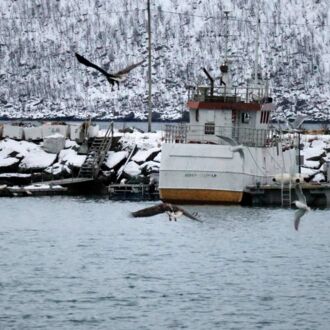 Trotz Urlaub weckt uns der Wecker um 5.45 Uhr. Wir fahren nach Tromsø zum Eingang des Ishavnhotels, um an der Whale- und Seebird-Watching-Tour teilzunehmen, die von Dienstag auf heute verlegt wurde. Doch leider sind wir so ziemlich die einzigen Menschen auf der Straße. Telefon, Handy und das direkt neben dem Hotel gelegene Büro des Veranstalter sind unbesetzt. Das Schiff dümpelt unbeleuchtet am Kai.