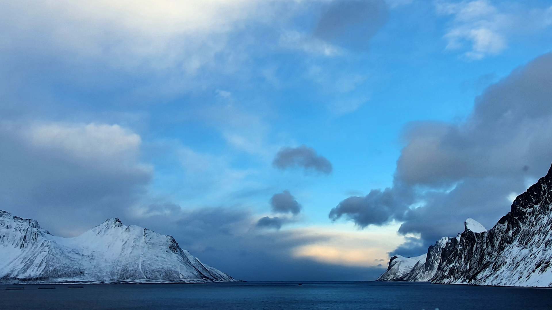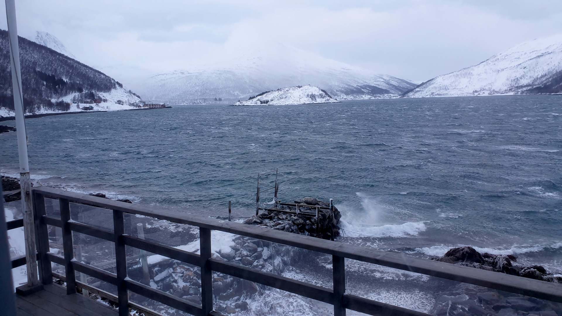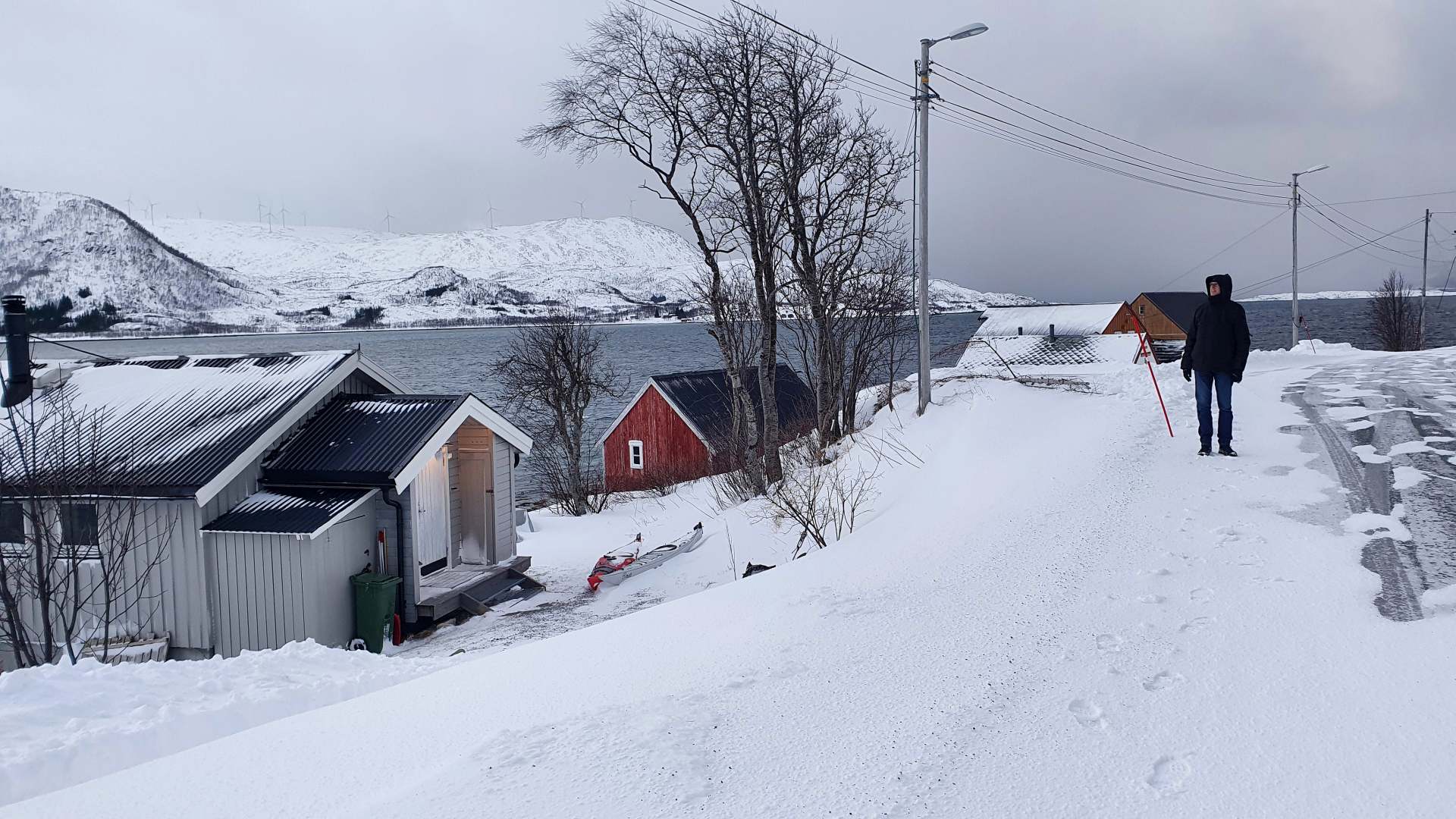 Kajaks haben wir leider nicht gebraucht. Unser Vermieter meinte vor Reiseantritt, es sei durchaus realistisch, im Januar/Februar im Fjord zu paddeln. Wir sehen das mit Skepsis. Es erschien uns entweder zu windig oder zu kalt – also zu gefährlich oder zu ungemütlich. Die Wetterumschwünge sind zudem sehr heftig und sehr unberechenbar und kommen teils weniger Minuten.