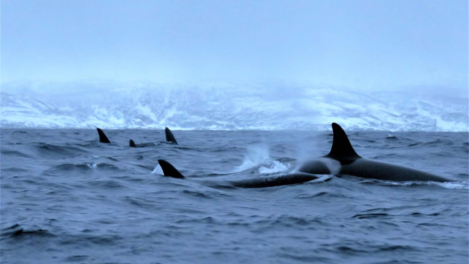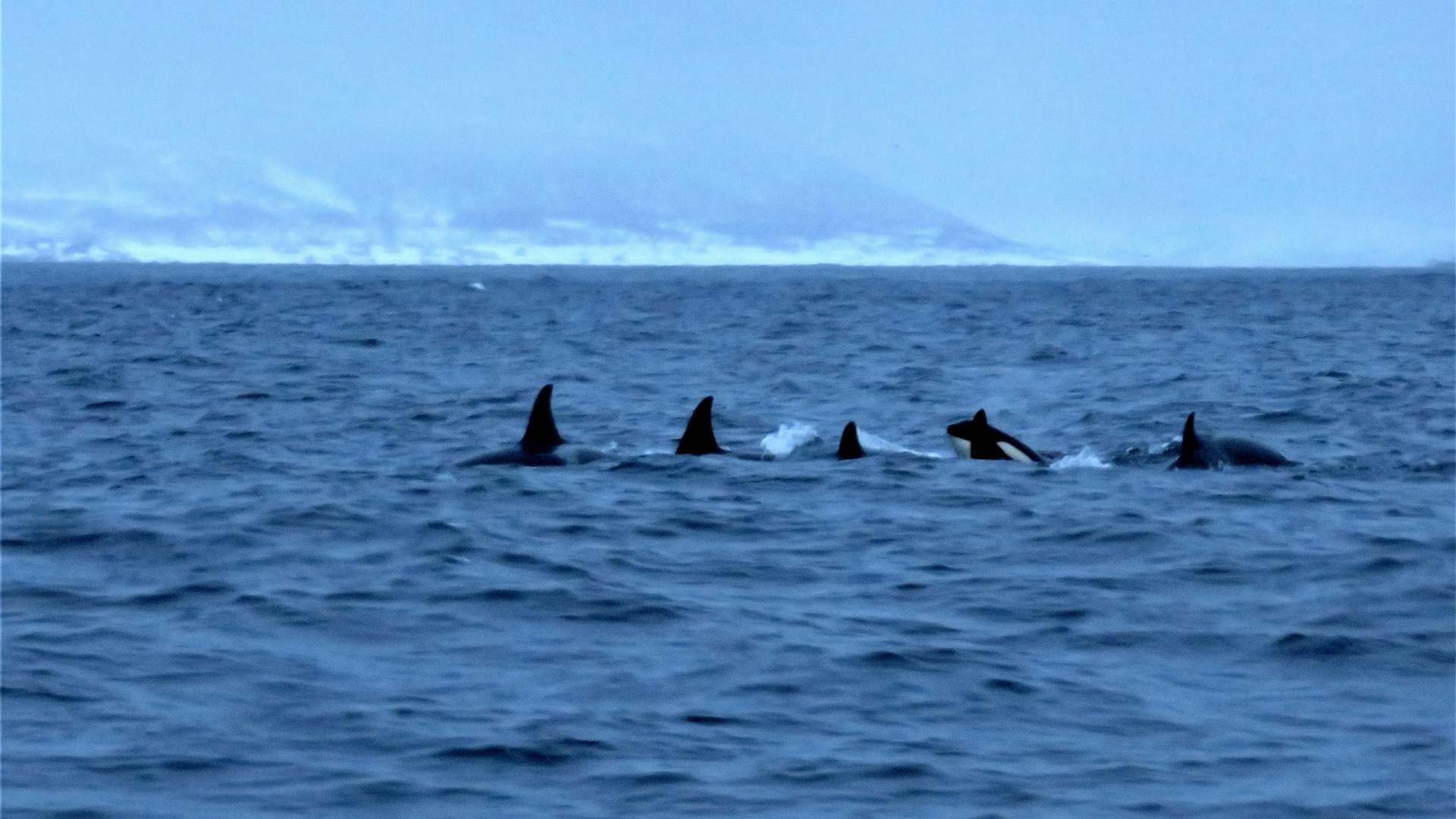 Bereits nach kurzer Zeit treffen wir auf eine Gruppe Orcas, dann auf eine zweite.