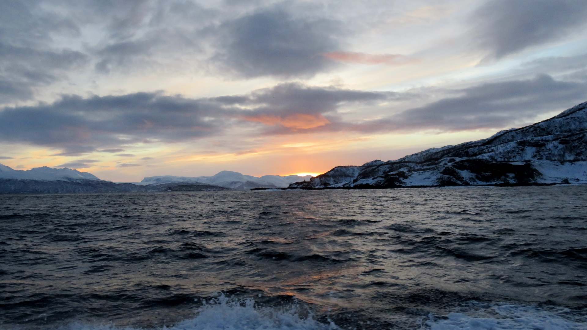 Abends müssen wir zügig ins Bett, denn die Nacht wird noch kürzer werden als die letzte. Wieder steht Whale-Watching auf dem Programm. Hoffentlich klappt es diesmal, denn das Wetter scheint ziemlich gruselig zu werden. Die Orcas werden nur bis Ende Januar vor Ort sein und diese Tour im RIP-Boat ist die allerletzte dieser Art in diesem Winter.